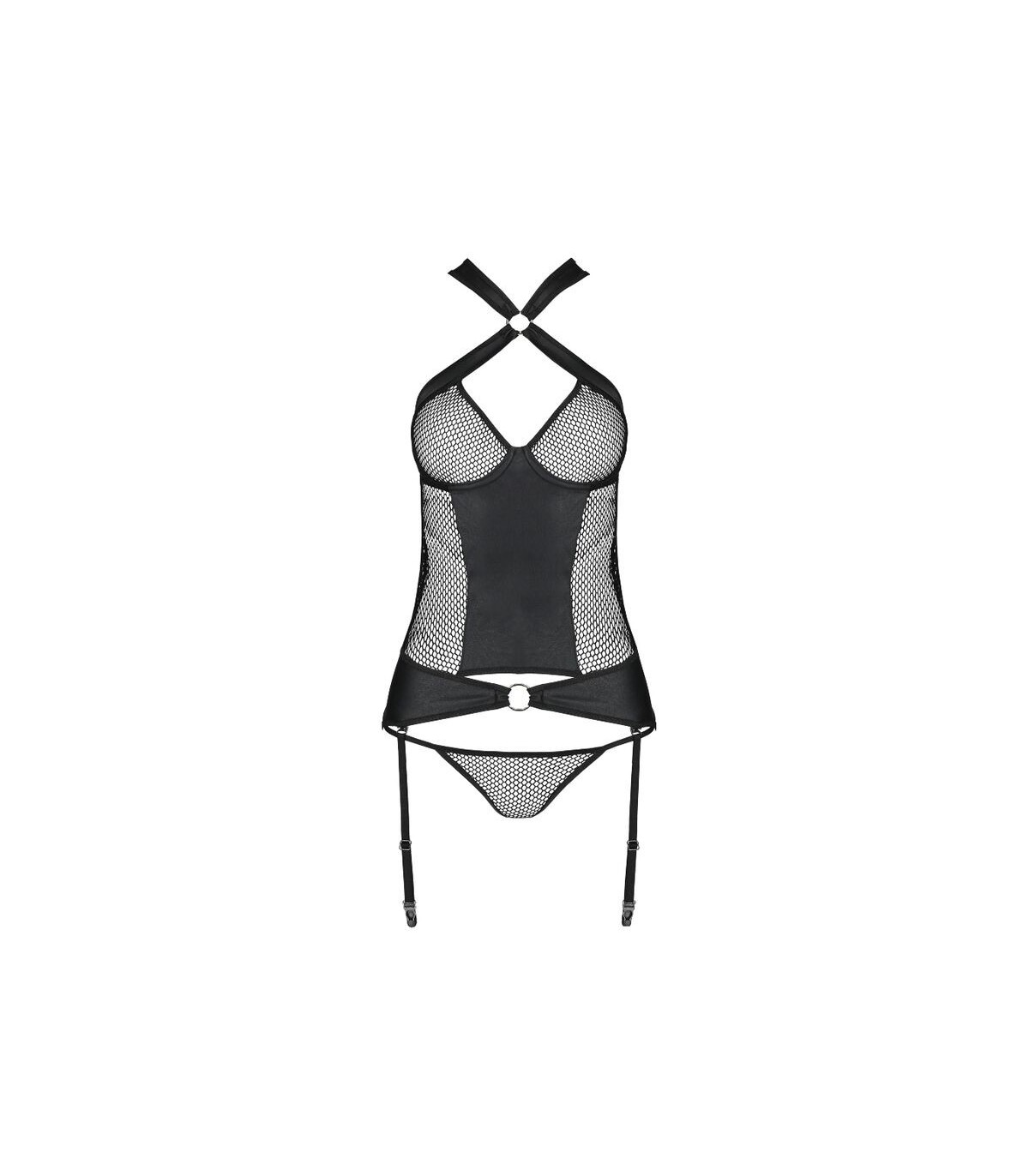 El corsé Amanda es una innovadora combinación de cuero detrás de una malla sensual, cuya tarea no es solo revelar seductoramente lo más femenino, sino también enfatizarlos. Las juntas doradas en forma de ruedas dan todo el carácter.