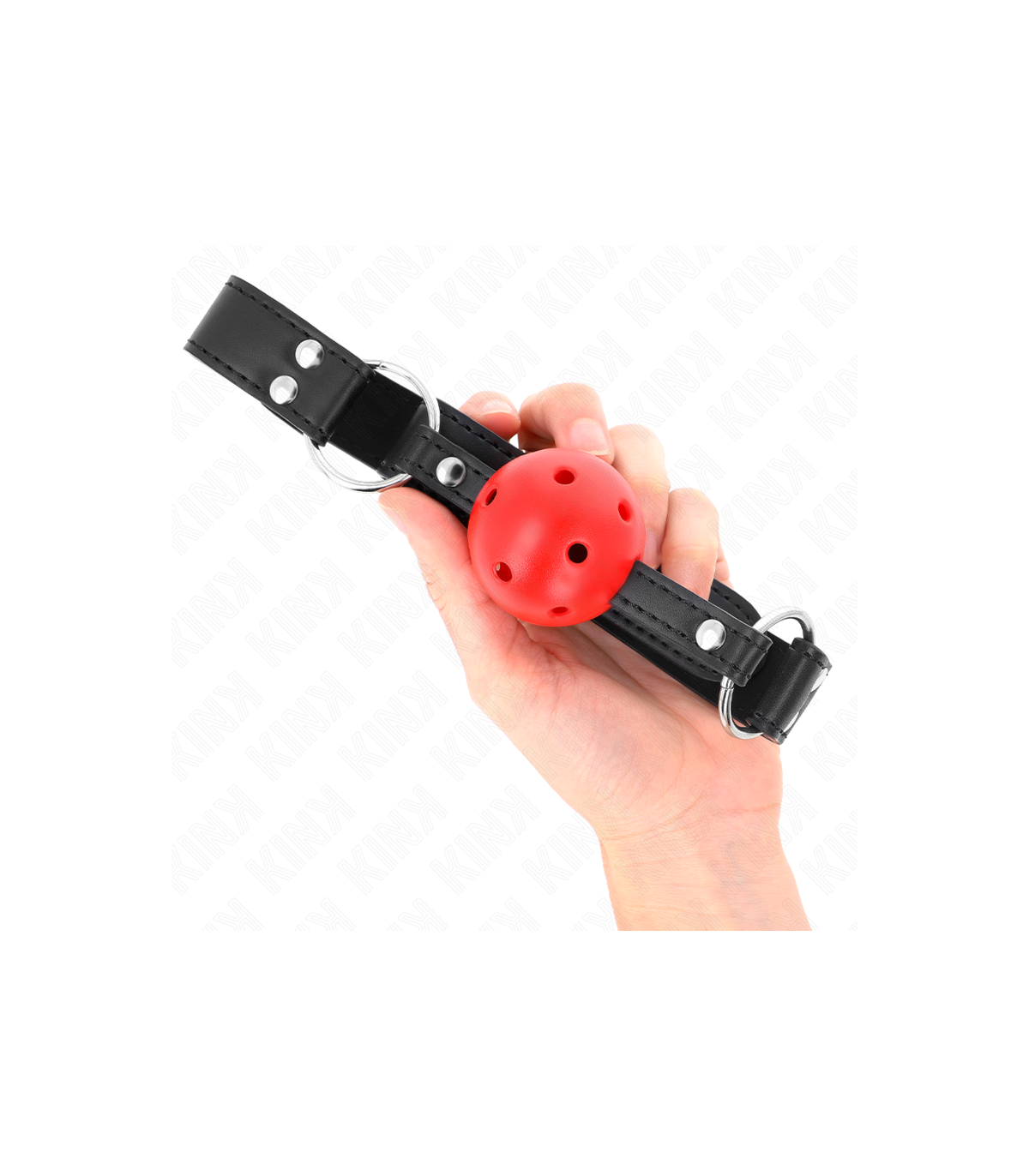 KINK - MORDAZA DE BOLA 4 CM TRANSPIRABLE CON DOBLE REMACHE DE CUERO 62 x 2.5 CM AJUSTABLE 42-58 CM