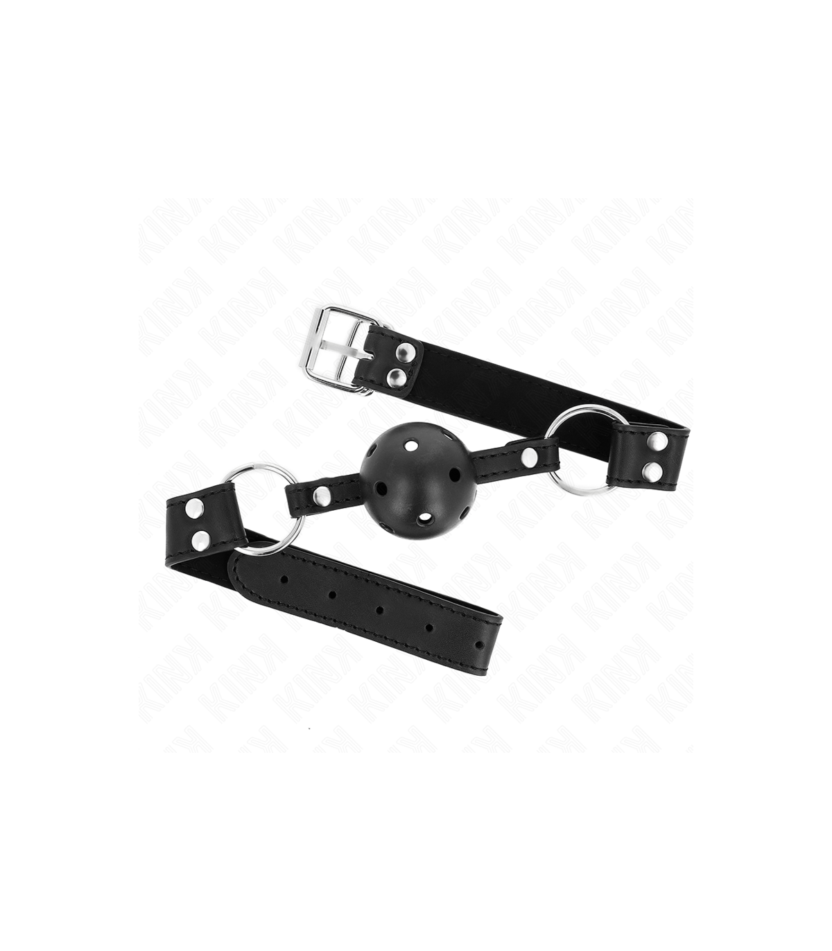 KINK - MORDAZA DE BOLA 4 CM TRANSPIRABLE CON DOBLE REMACHE MODELO 1 NEGRO 62 x 2.5 CM AJUSTABLE 42-58 CM