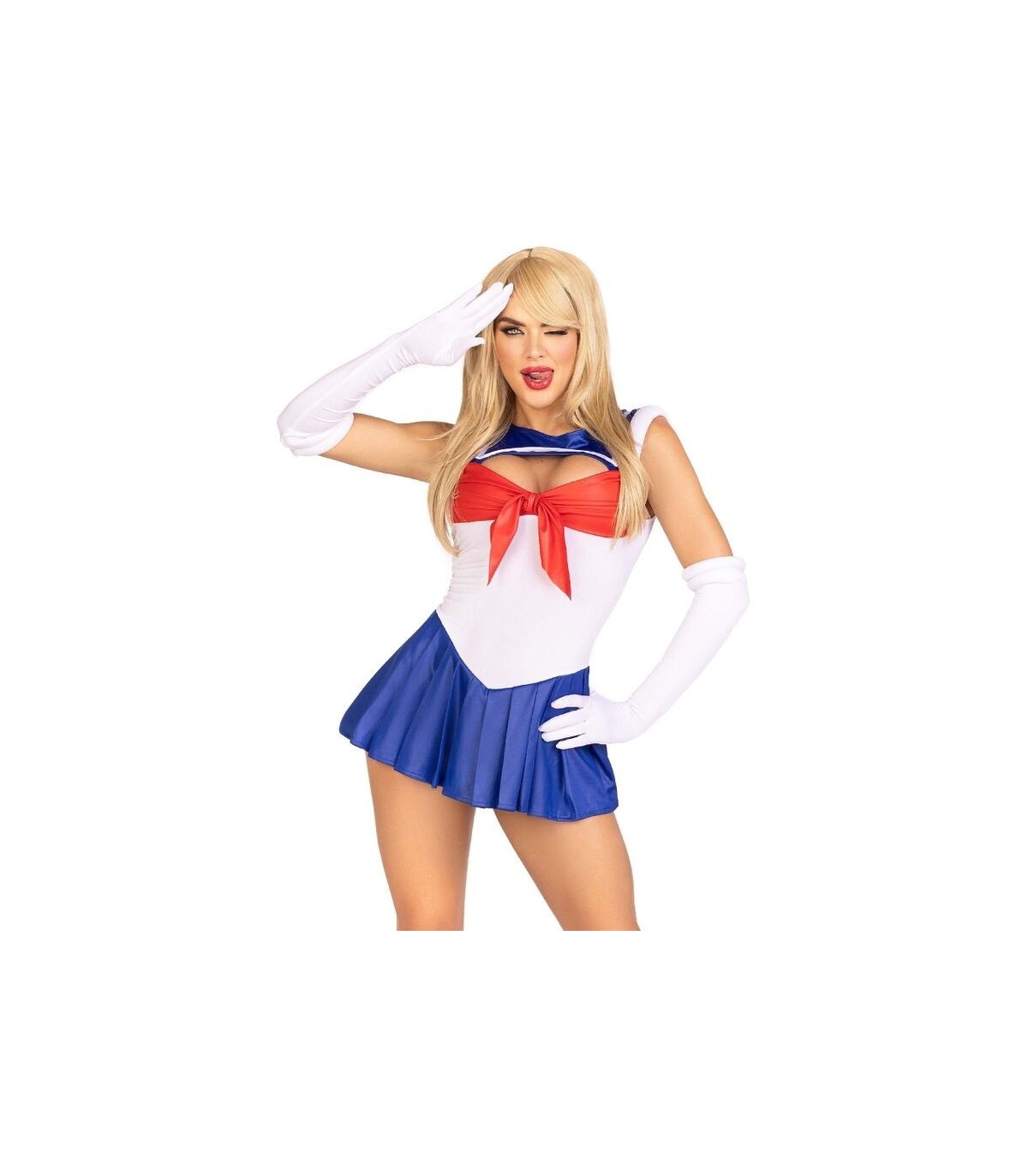 ¡Desata a la diva de dibujos animados que llevas dentro con este conjunto de 3 piezas de Marinera Sexy inspirado en la cultura pop! Ideal para Halloween o carnaval, este atrevido body con cierre a presión se destaca por un coqueto cuerpo recortado y una falda plisada juguetona.