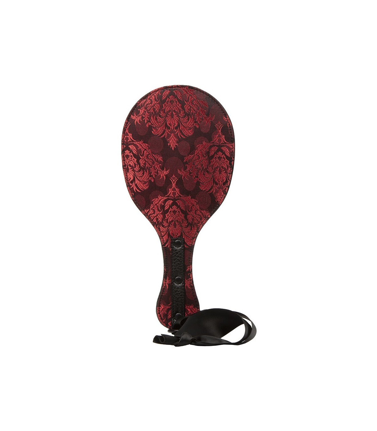 Para las noches en las que te sientas especialmente traviesa, disfruta de los placenteros toques de la Pala Doble Redonda Scandal®. Dale a tu sumiso suaves toques con la suave pala de doble capa y su resistente mango. El castigo y el placer se combinan a la perfección con esta pala doble, con un interior de polipiel vanguardista y un exterior de brocado sedoso. Tu sumiso disfrutará de cada azote intenso de esta resistente pala de doble costura y obedecerá todas tus órdenes mientras la pala doble proporciona potentes palmadas. Esta suave pala está diseñada tanto para principiantes como para amantes del sexo experimentados, para que prueben suaves toques y disfruten de las impresionantes palmadas que anhelan los fetichistas más experimentados. Libera tus deseos más atrevidos y disfruta de una noche de placer sin límites.