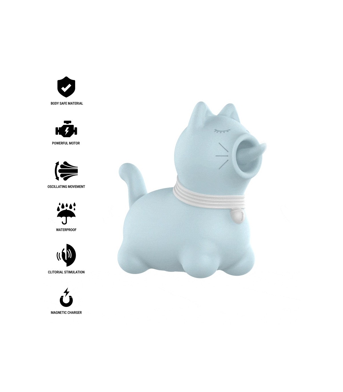 El diseño exterior es dulce, moderno y funcional, con una estética inspirada en la ternura y el juego. Su color azul suave (Pantone similar a 292U) le da un toque de frescura y tranquilidad, sin perder el encanto de un juguete sofisticado y lleno de intención. Es compacto, ergonómico y fácil de sostener, perfecto para uso individual o como parte del juego en pareja.