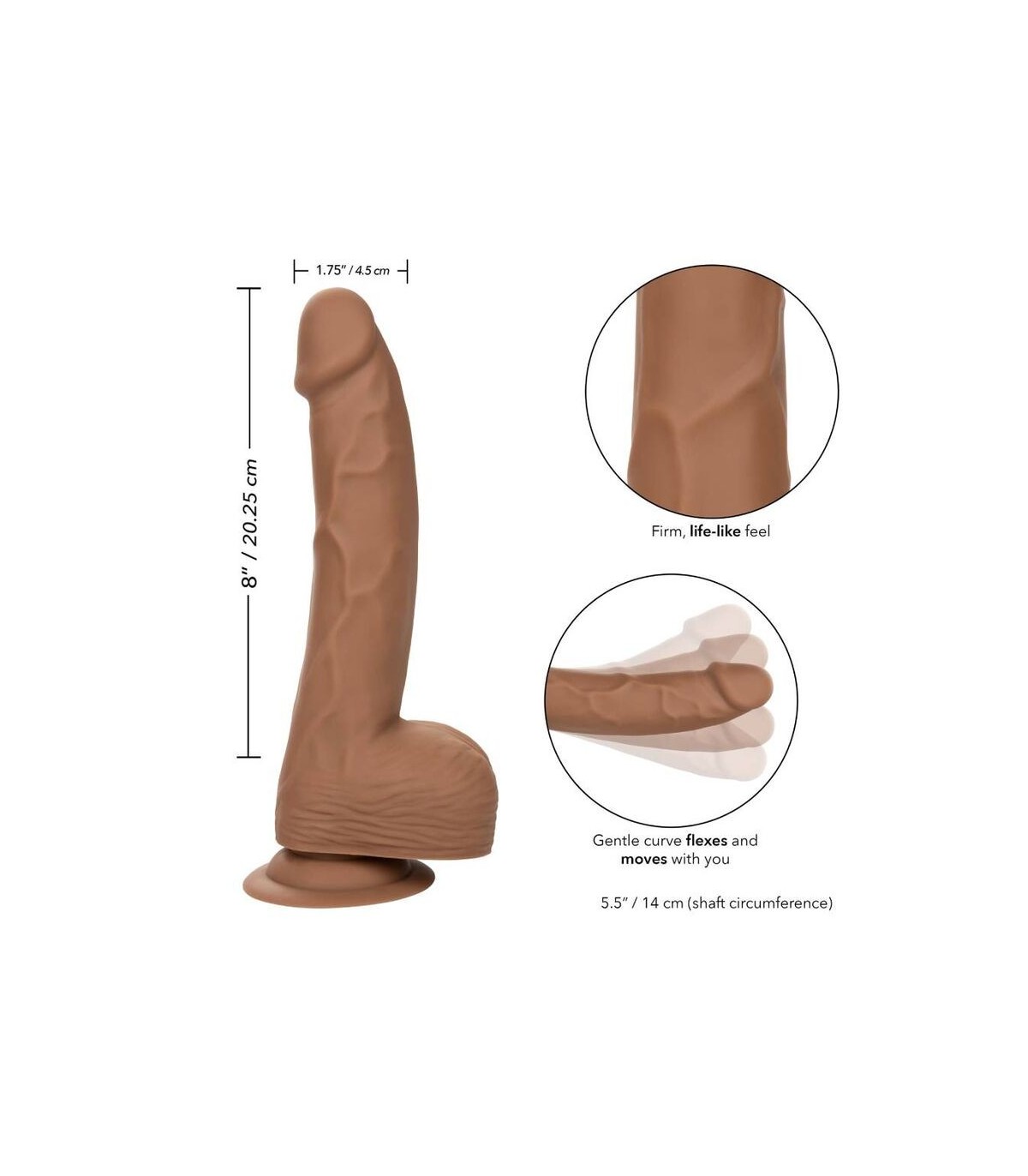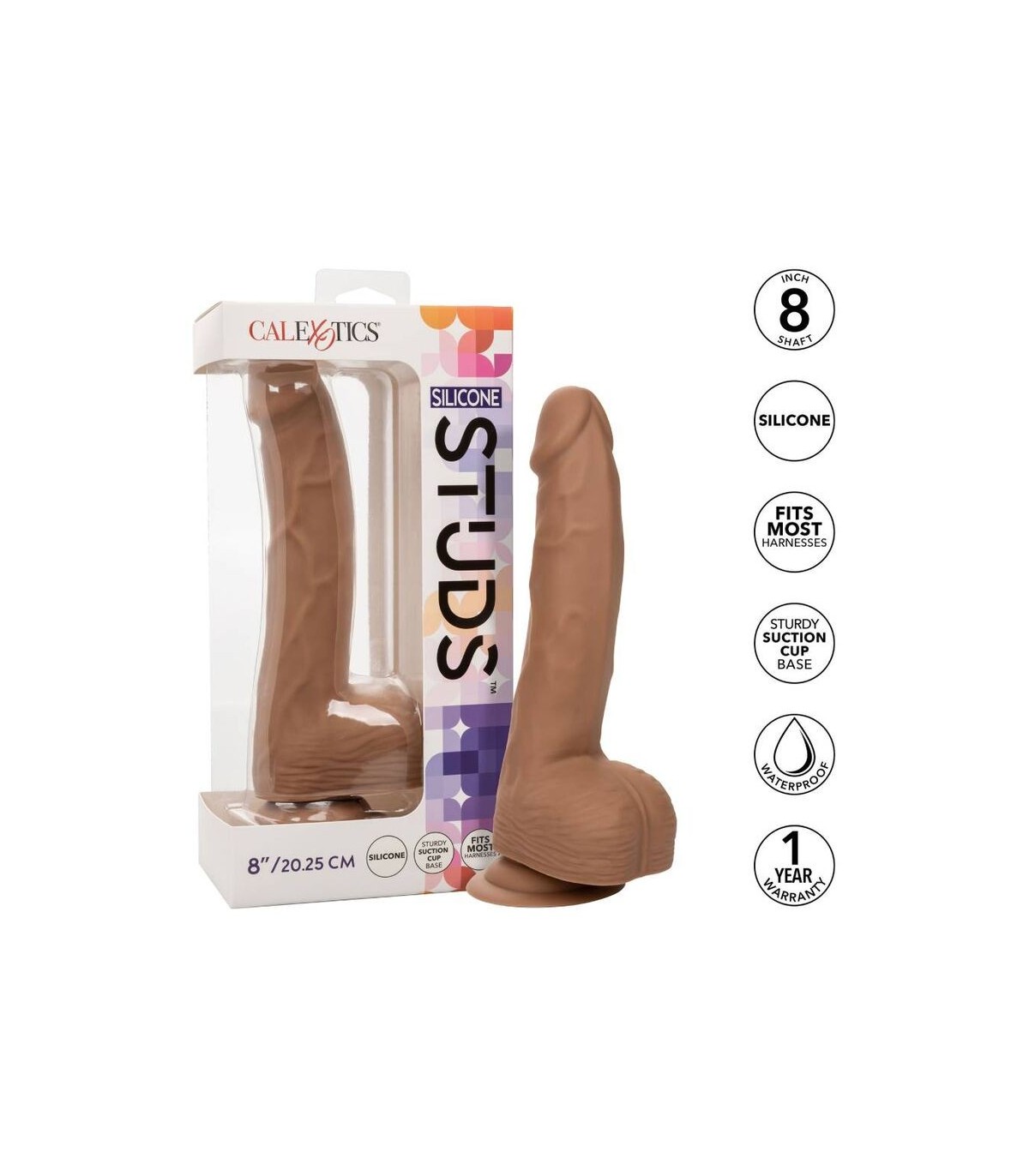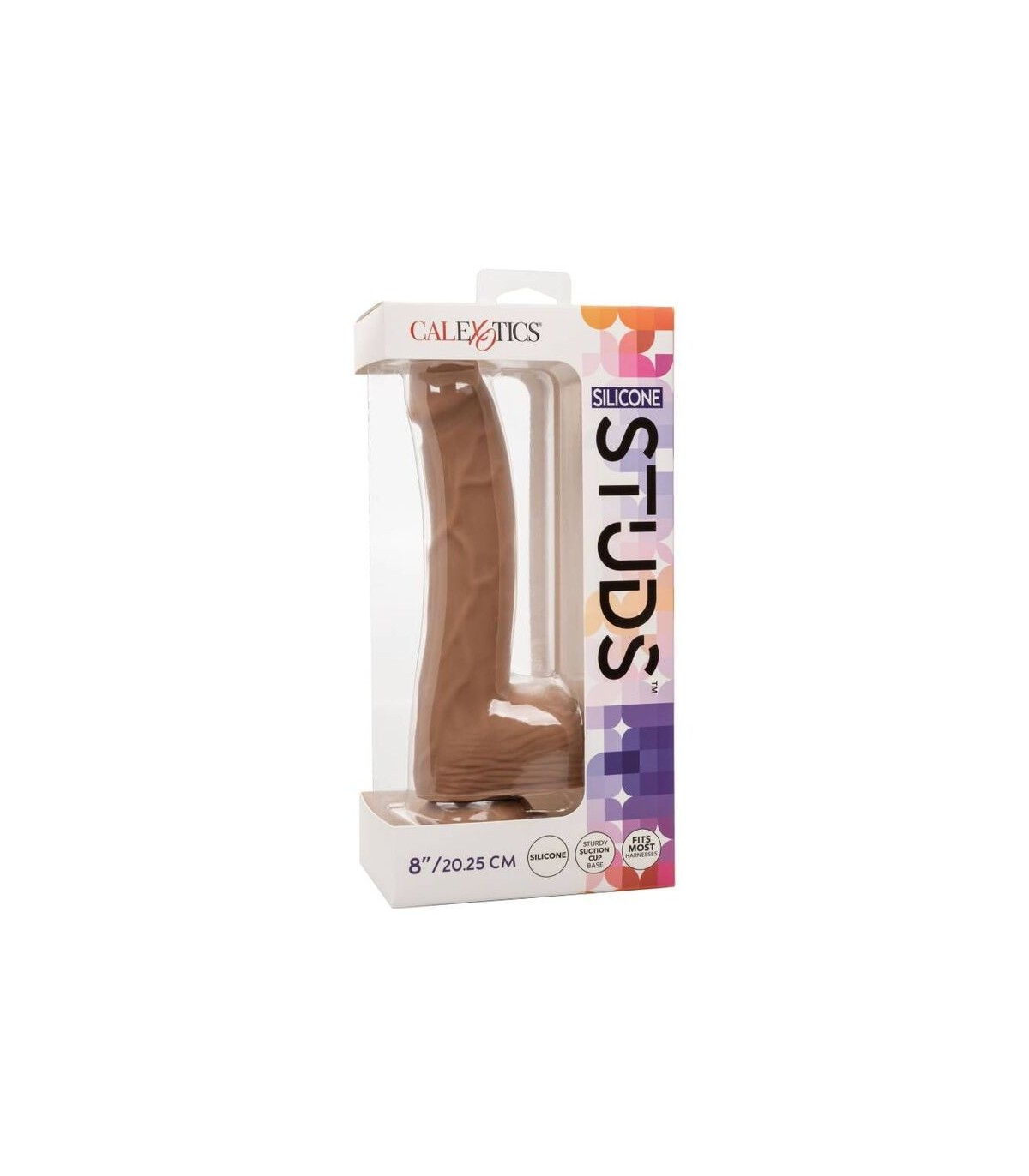 Se trata del tamaño de su placer y el Calexotics Silicone Studs 8 ha llegado para ofrecer una experiencia de golpe para cualquier tamaño queen. El dong real se crea con un amplio eje de 8 pulgadas, un diseño flexible realista y una base de taza de succión. Lleva el placer que has estado ansiando con un dong de 8 pulgadas de largo con punta sensual, eje texturizado y bolas realistas. El eje texturizado tiene una sensación firme pero flexible que seguramente ofrecerá una experiencia de penetración verdaderamente realista. La base con bridas tiene una resistencia de succión que se puede usar en un arnés o montar en una superficie plana para una diversión sensacional con manos libres .
