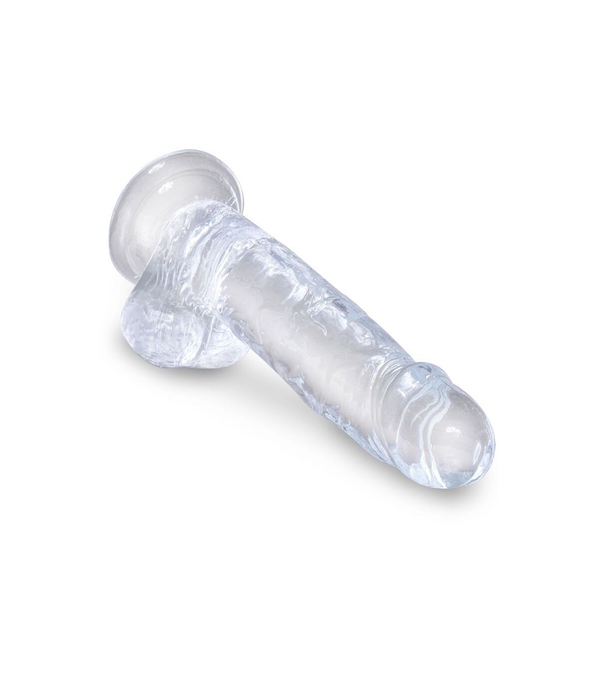 Con su eje flexible, venas detalladas y cabeza definida, King Cock Clear atraerá sus sentidos visual y físicamente. La potente base de ventosa se adhiere a casi cualquier superficie plana y hace que todos los arneses de consolador sean compatibles. Vea la innovación, un material increíblemente puro y translúcido, sienta el realismo.