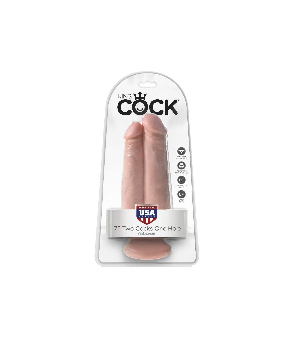 King Cock satisface tus fantasías 2 en 1 con dildo esculpido como penes realísticos. Exquisitamente artesanal y flexible, este King Cock doble provee una excitante estimulación y una satisfactoria sensación de placer. Su potente ventosa hace que puedas adherirlo a casi cualquier superficie plana, incluidos los arnés compatibles.