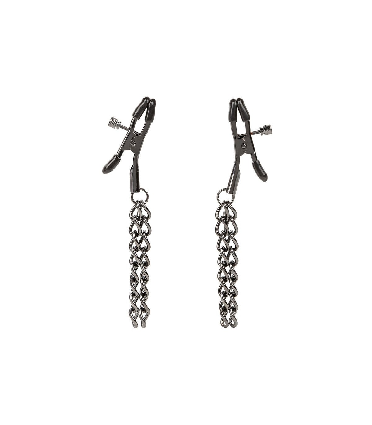 Las almohadillas suaves brindan un abrazo suave, ampliando el reino del juego sensorial. Las cadenas dobles caen graciosamente desde cada abrazadera, amplificando las sensaciones con cada movimiento. Fabricadas con acentos metálicos libres de níquel, garantizan una seducción sin preocupaciones.