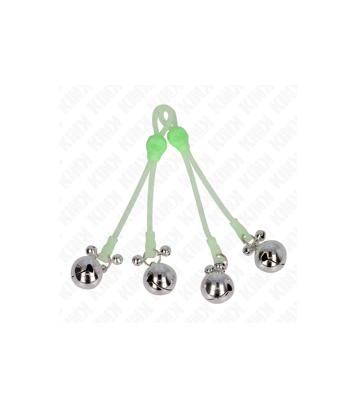 KINK - LUMINOUS SKULL NIPPLE CLAMPS WITH RING BELLS ADJUSTABLE GREEN / SILVER