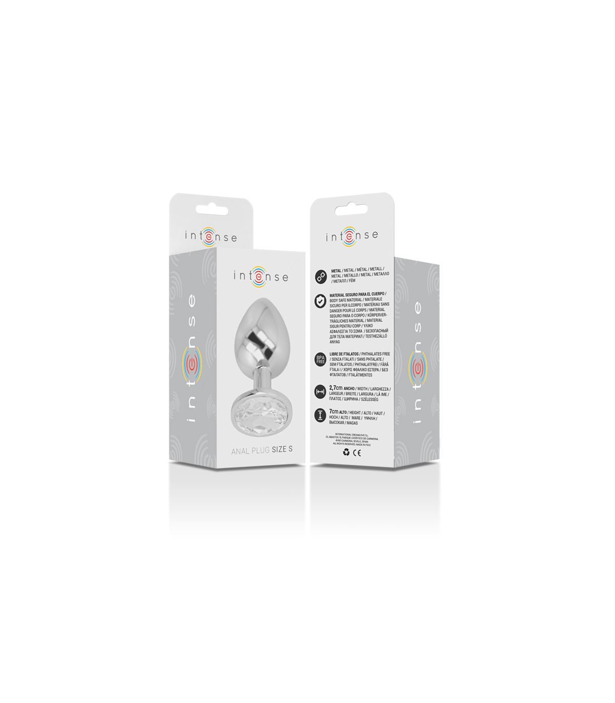 Sumérgete en un mundo de glamuroso placer con el plug anal con joya de diamante de INTENSE. Este plug anal de alta calidad está hecho de metal totalmente libre de Phalatos testado y suave y está adornado con una piedra brillante. Disfruta del lujoso diseño que convierte tus aventuras anales en una experiencia glamorosa. Con su agradable tamaño, su forma firme y manejable, este plug ofrece una estimulación anal elegante y cómoda.Ç