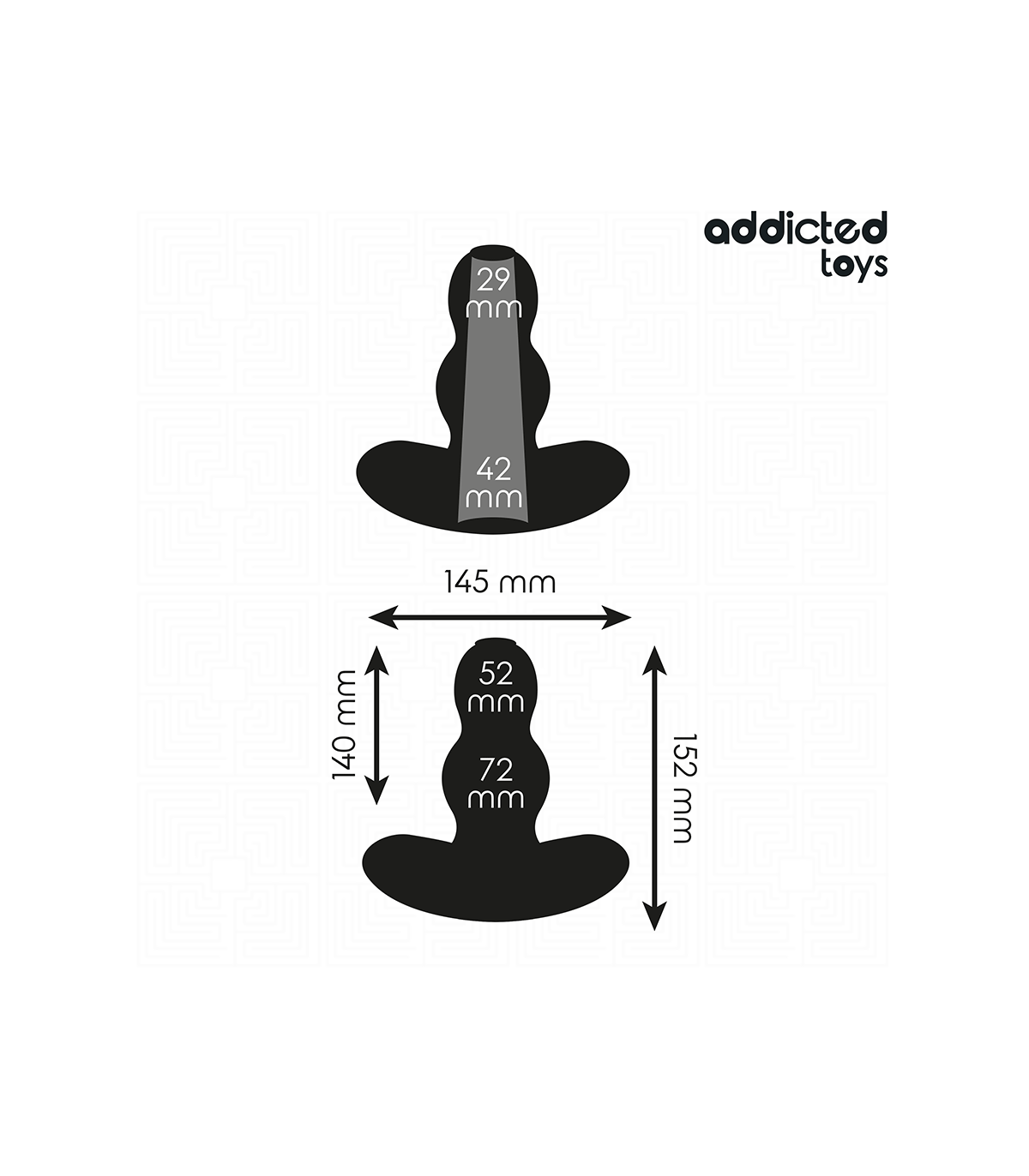 La borla inferior tiene un ancho de 72 mm, ofreciendo una expansión significativa que aporta una sensación de llenado placentero y desafiante durante su uso.