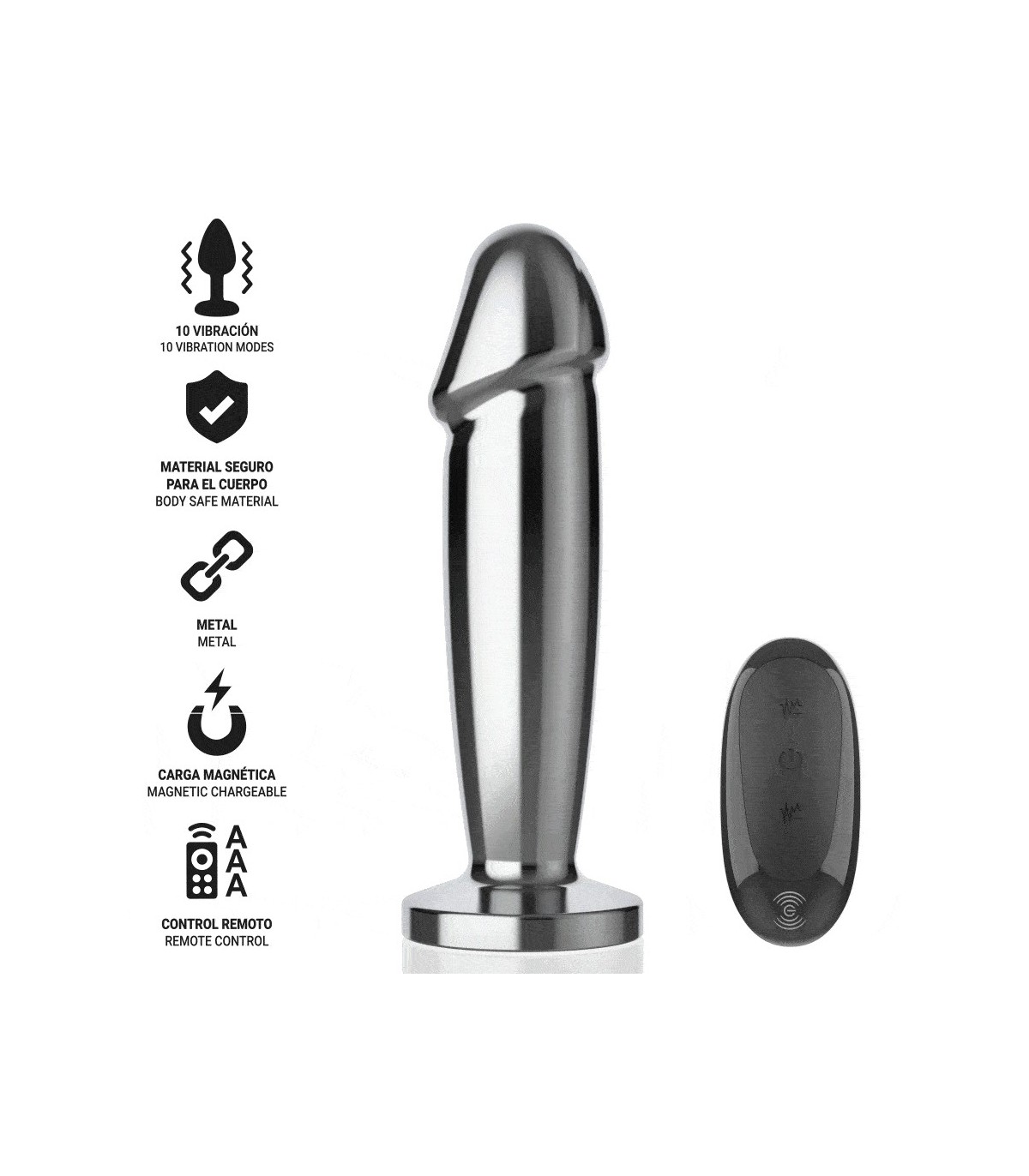 Fabricado con material de aluminio hipoalergénico, libre de ftalatos y seguro para el cuerpo, este plug vibrador asegura que tu experiencia sea completamente segura. La superficie pulida y suave garantiza una inserción fácil y cómoda, mientras que el diseño ergonómico y el tamaño de 11.8 cm lo hacen perfecto para aquellos que buscan un juguete anal de tamaño medio, ideal para disfrutar de una penetración precisa y placentera.