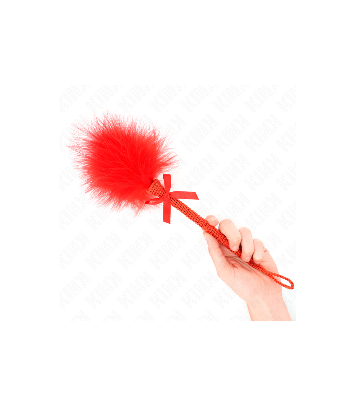 KINK - MASAJEADOR DE CUERDA DE NAILON CON PLUMAS PARA COSQUILLAS Y LAZO ROJO 25 CM