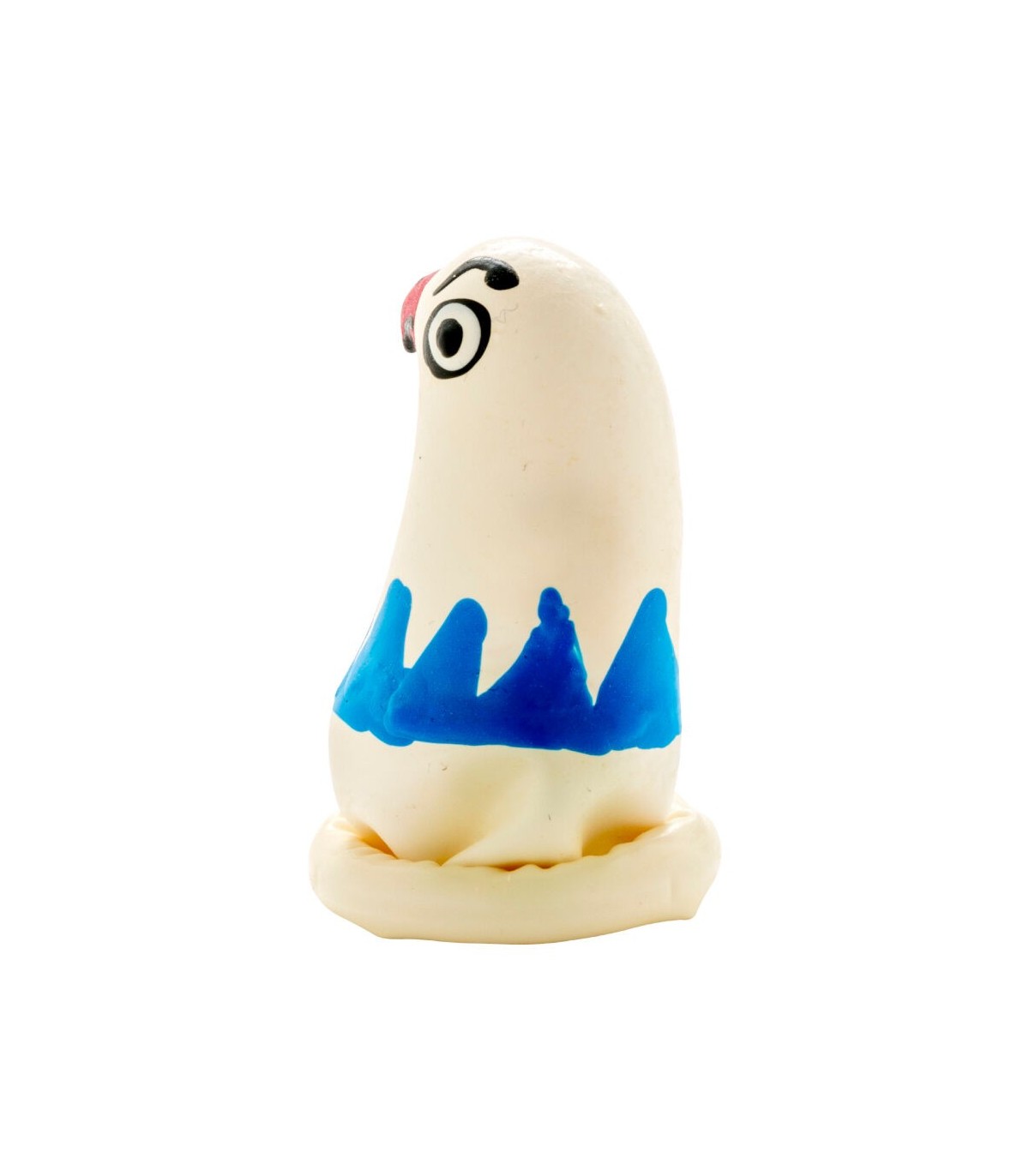 Condones de látex creados individualmente, sumergidos y pintados a mano.