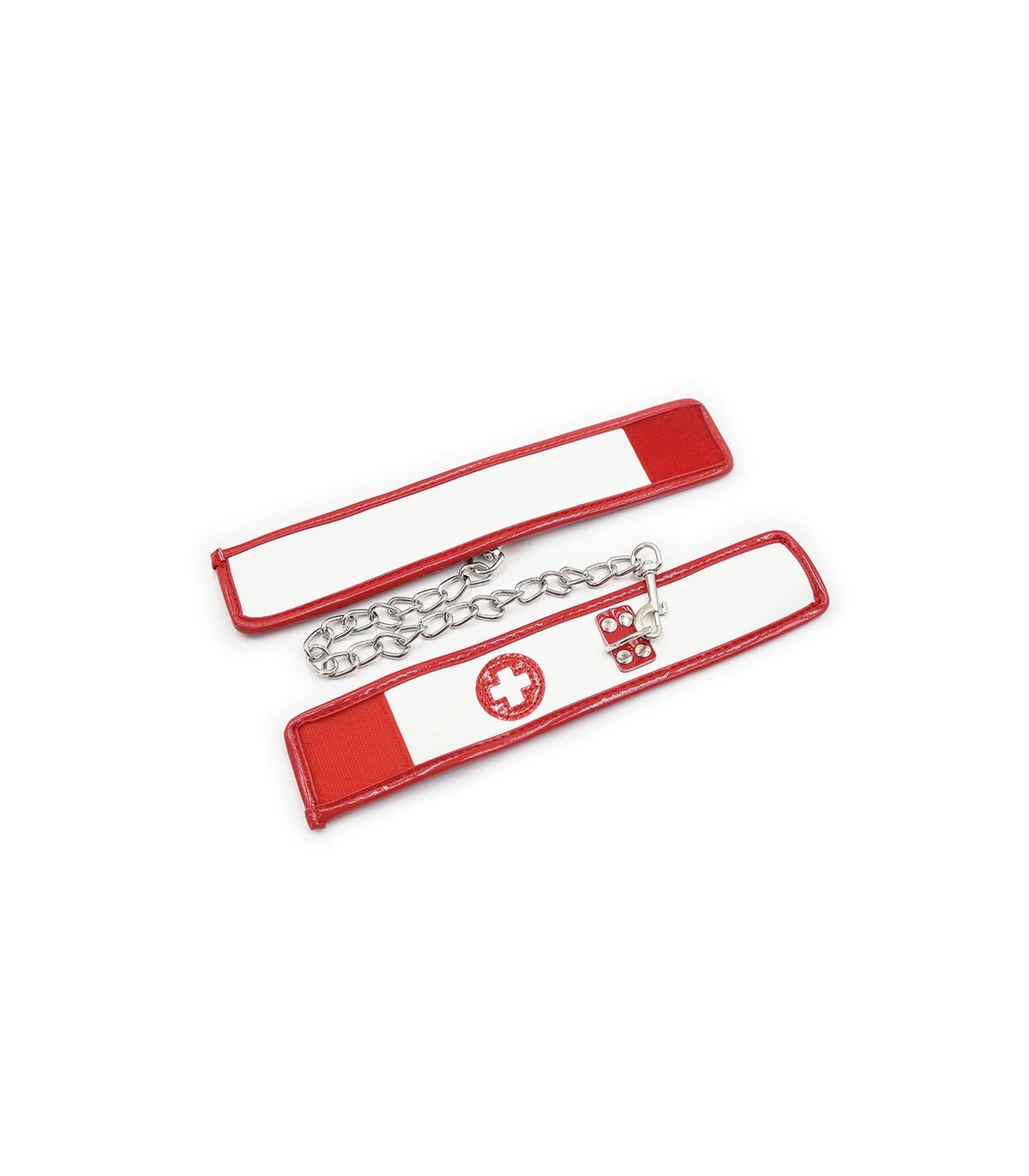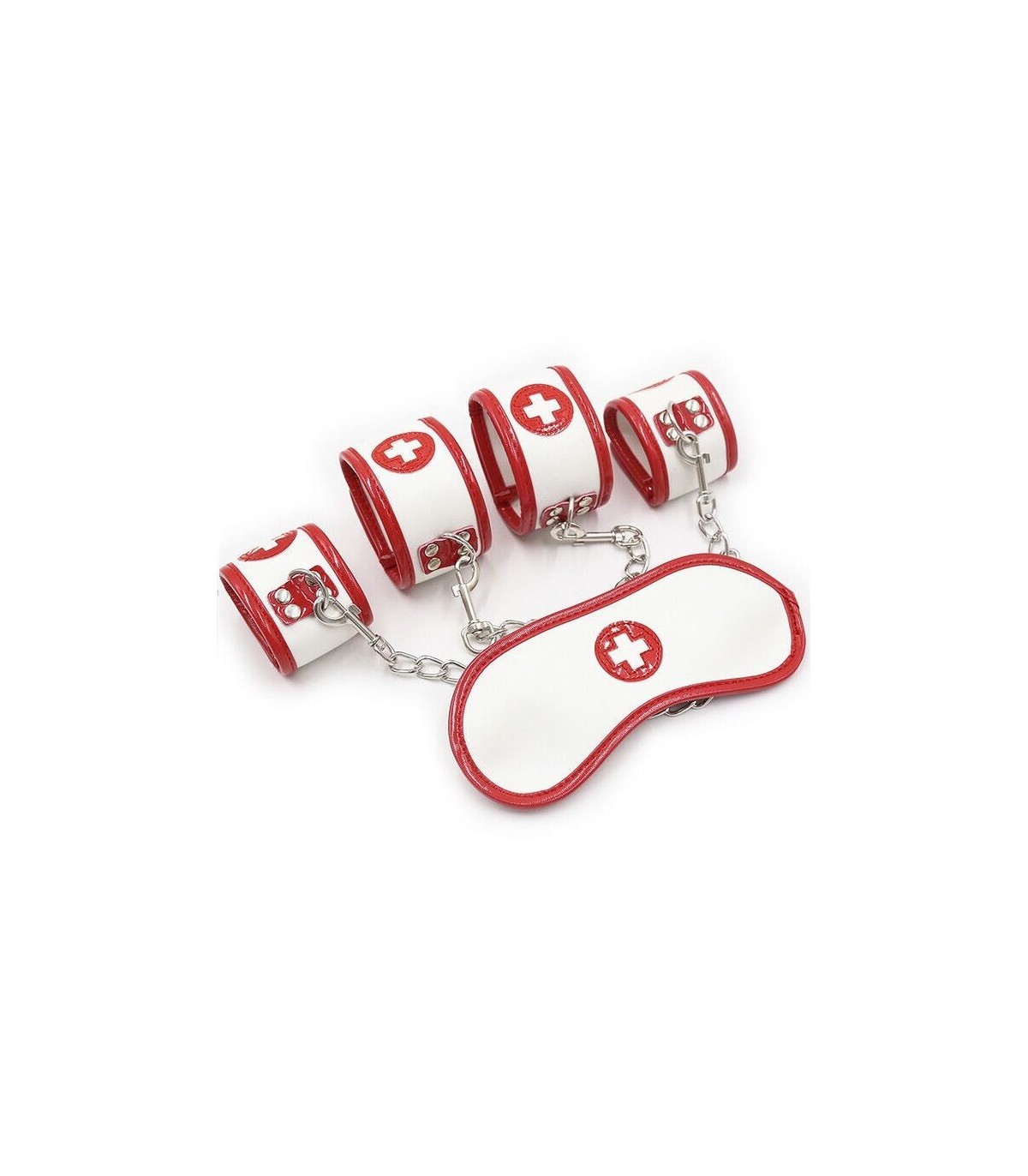 - Incluye esposas muñecas + esposas tobillos + antifaz