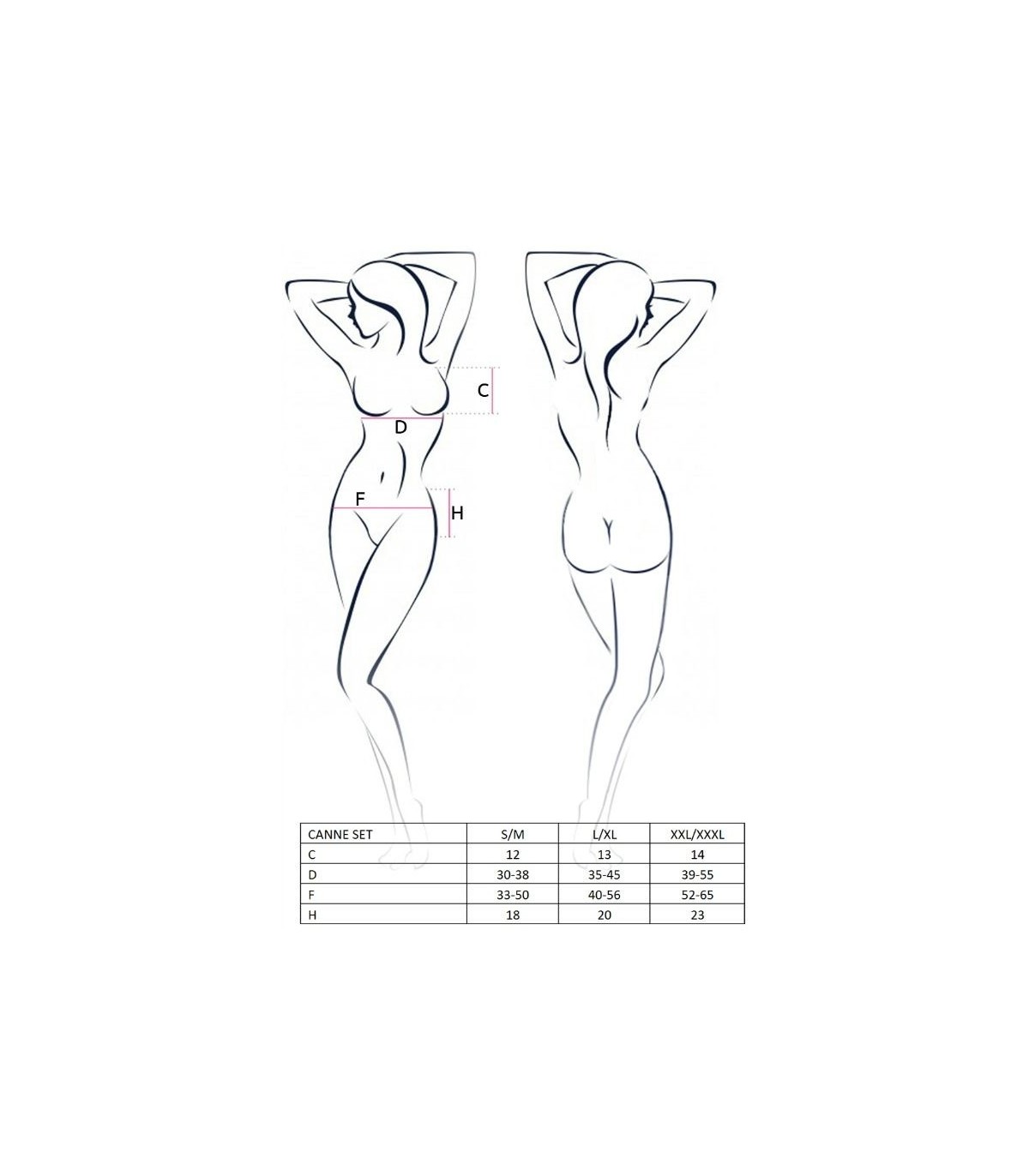 El set de la colección Canne es un fabuloso conjunto de lencería de diseño espectacularmente sexy con el que te convertirás en una bomba de seducción, fabricado por la prestigiosa marca de lencería Passion