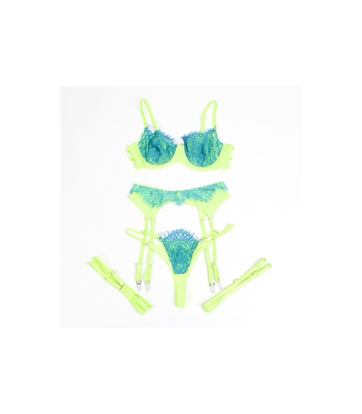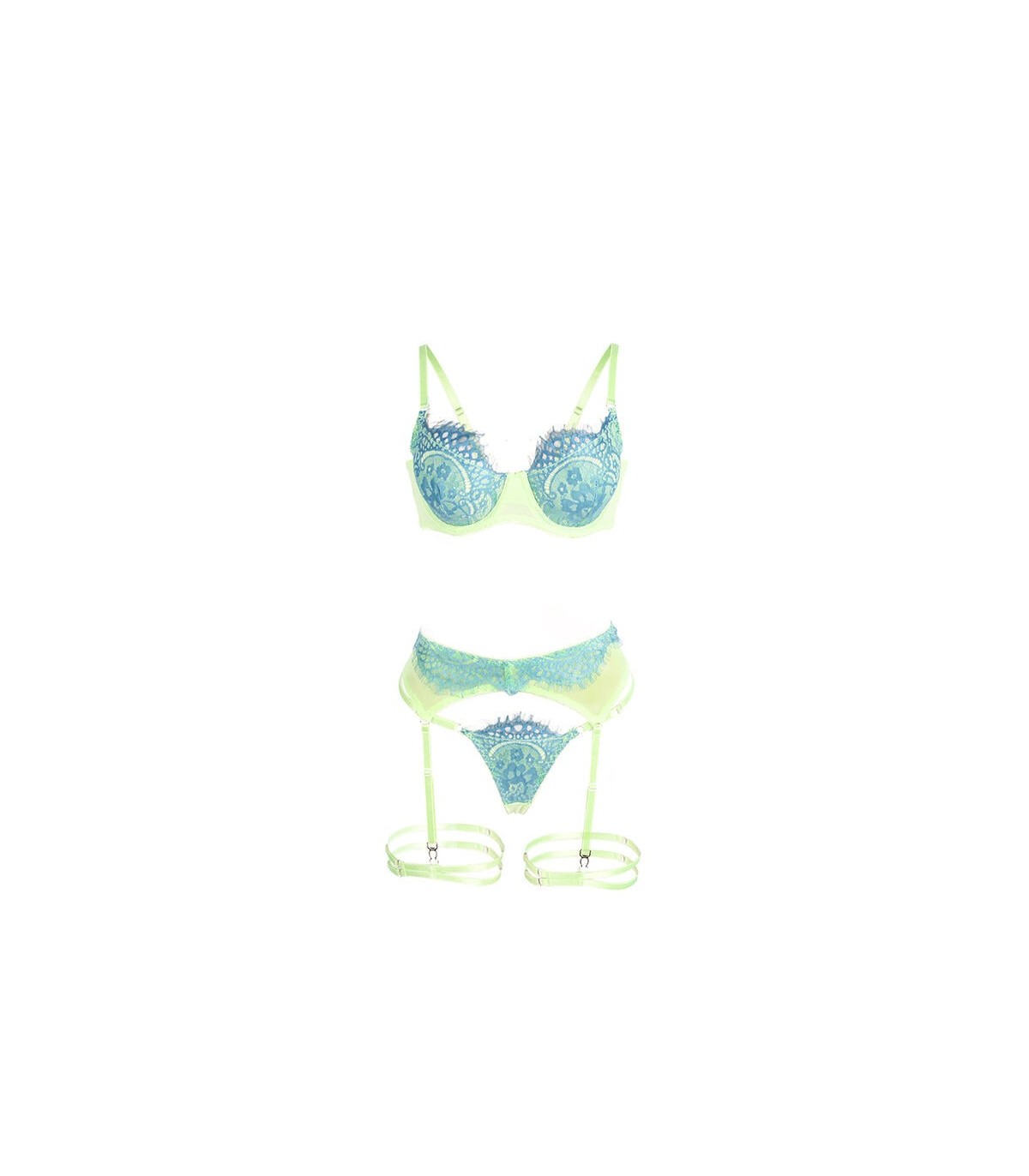 SUBBLIME - 955311 SET OF BRA WITH LACE AND GARTER LINES GREEN AND BLUE S/M