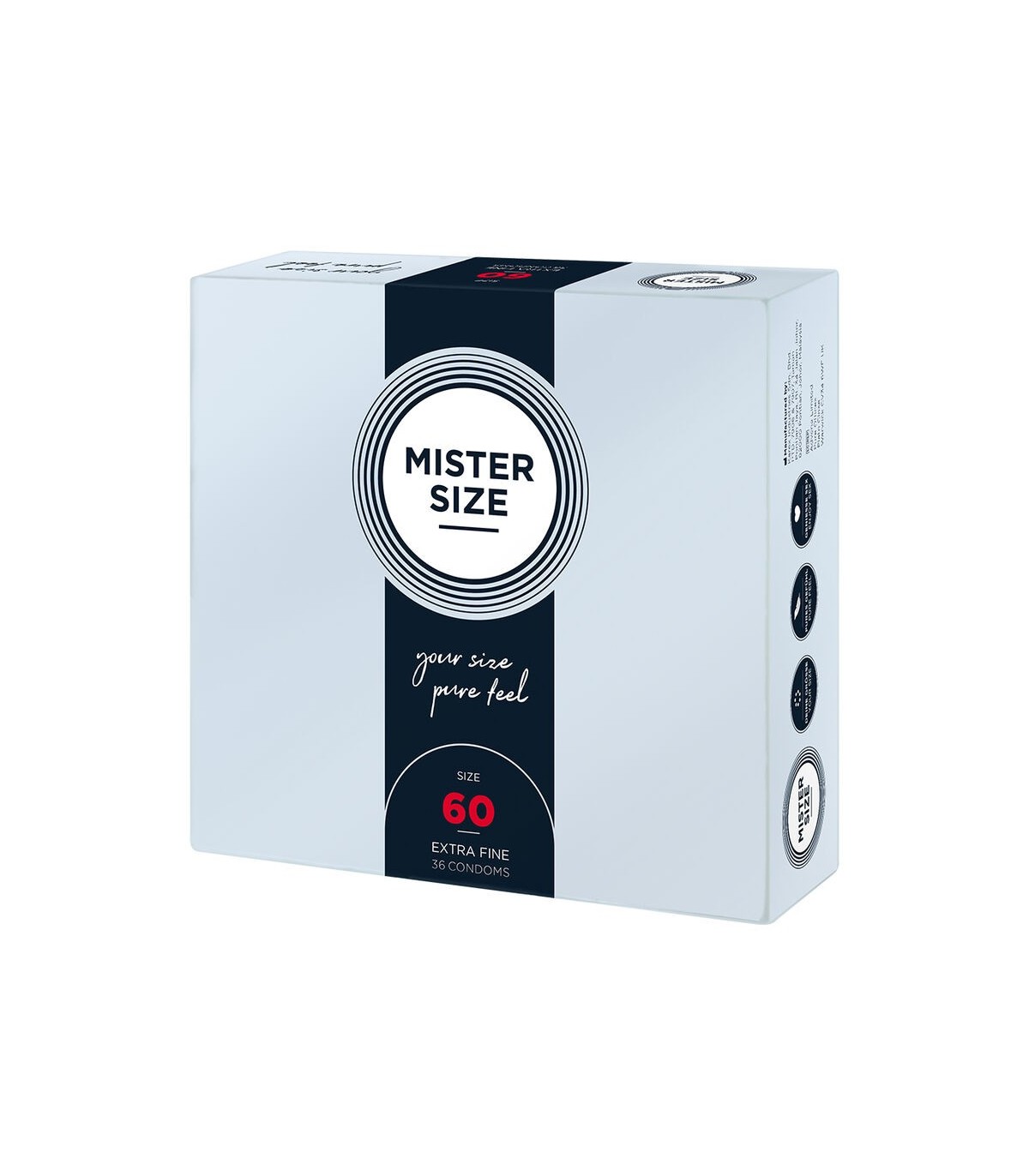 en un condón demasiado apretado. Pero ten la seguridad de que con MISTER SIZE 60 todo encaja perfectamente y puedes relajarte y concentrarte por completo en todo lo bueno. Así que disfruta del momento y vuela a alturas inesperadas.
