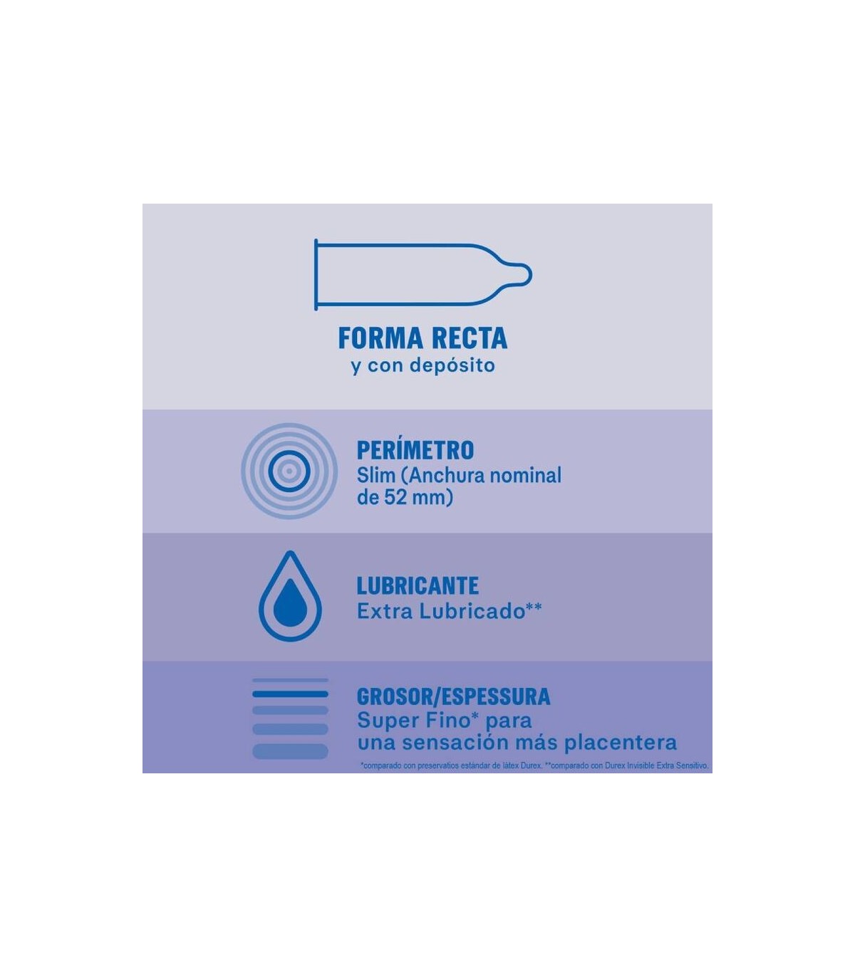 Durex indivisible extra fino, extra sensitivo. Los preservativos Durex Invisible son los más finos que Durex ha desarrollado, diseñados para maximizar la sensibilidad, proporcionando un alto grado de seguridad y protección. Todos los preservativos de Durex superan la norma internacional de calidad ISO4074:2002 para preservativos de latex de caucho natural masculinos.