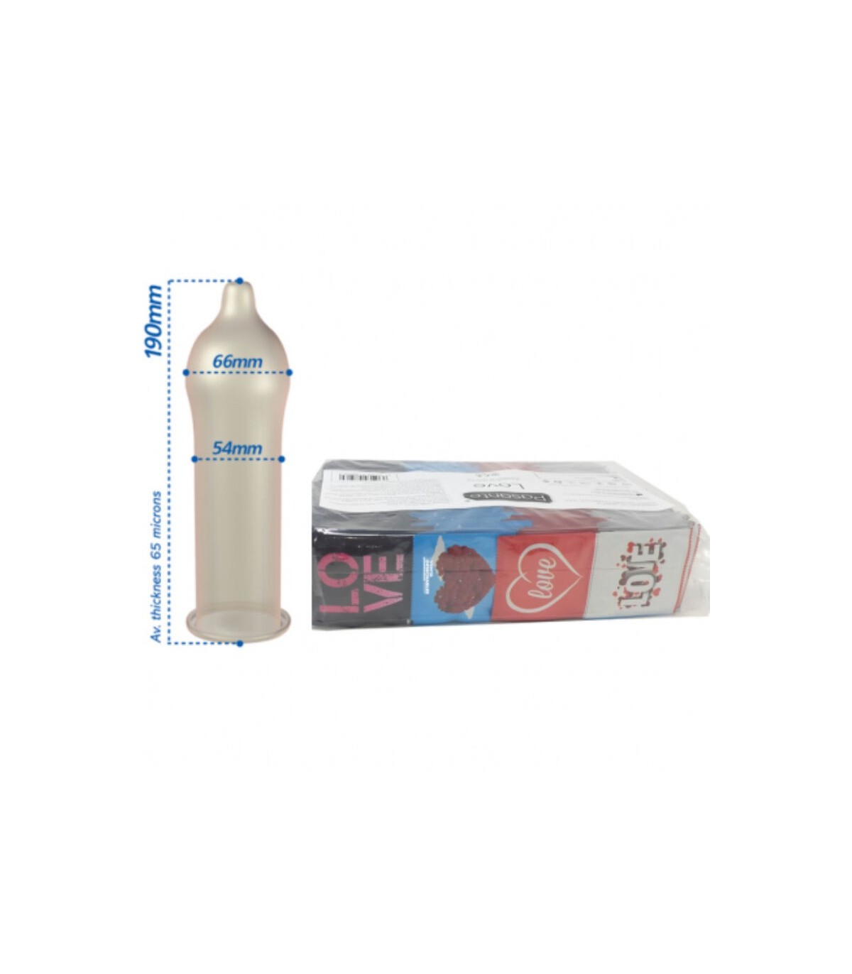 Preservativo love de la marca Pasante ofrecen simplicidad en las formas: comodidad y sensación. Contiene preservativos con 4 símbolos del amor: corazones y letras de amor. Ideales para repartir en fiestas de enamorados, bodas o día de San Valentín.