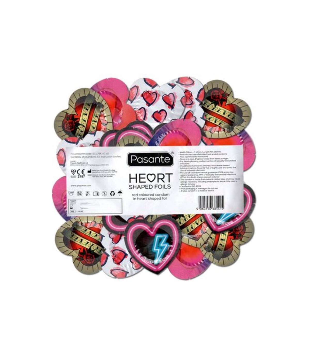 Estos finos condones en forma de corazón son una primicia mundial. Desarrollado por la marca inglesa Pasante, hay 4 diseños diferentes de que envuelven a los preservativos. Cada figura de corazón contiene un preservativo sensibles de color rojo con forma de corazón.