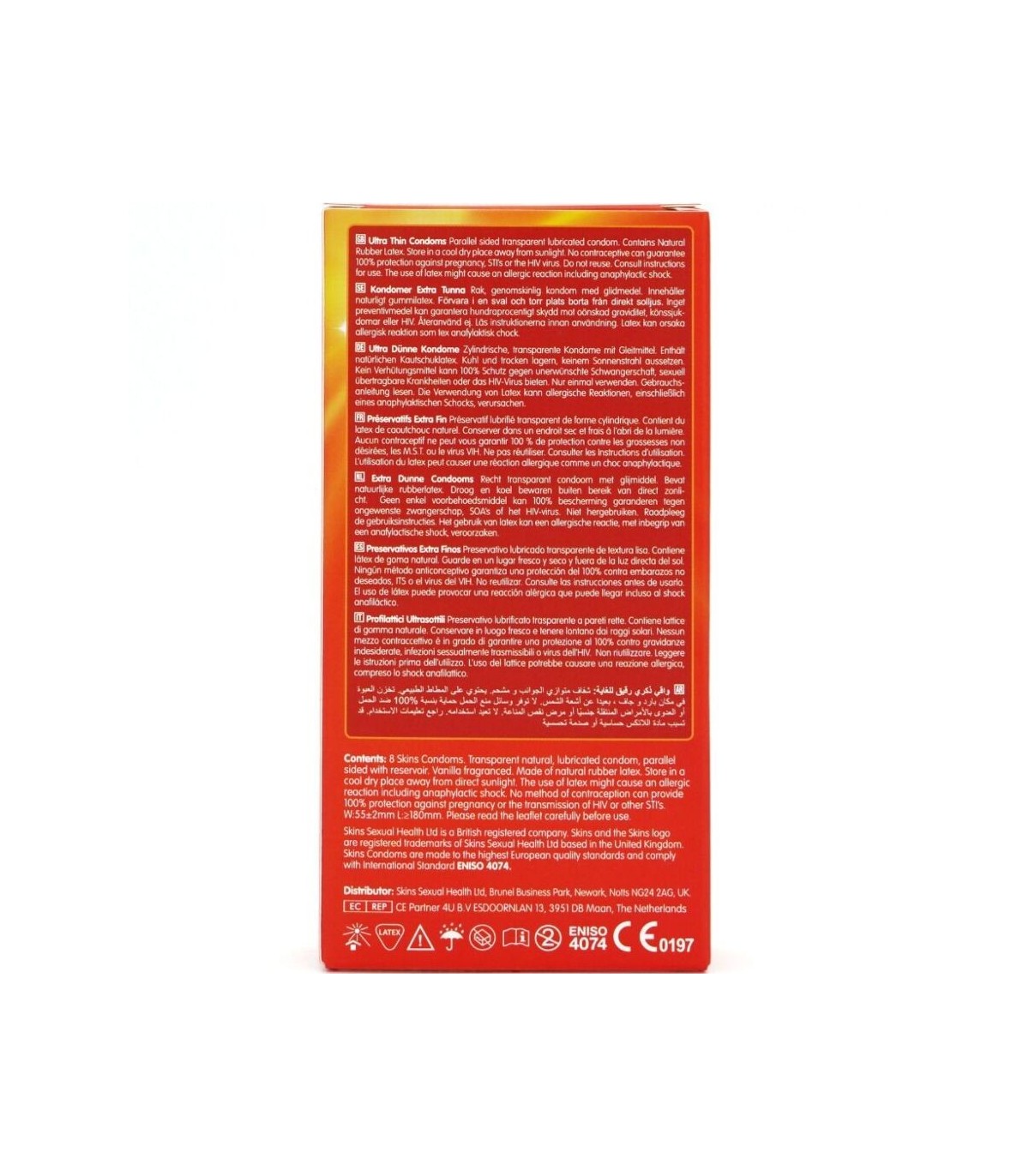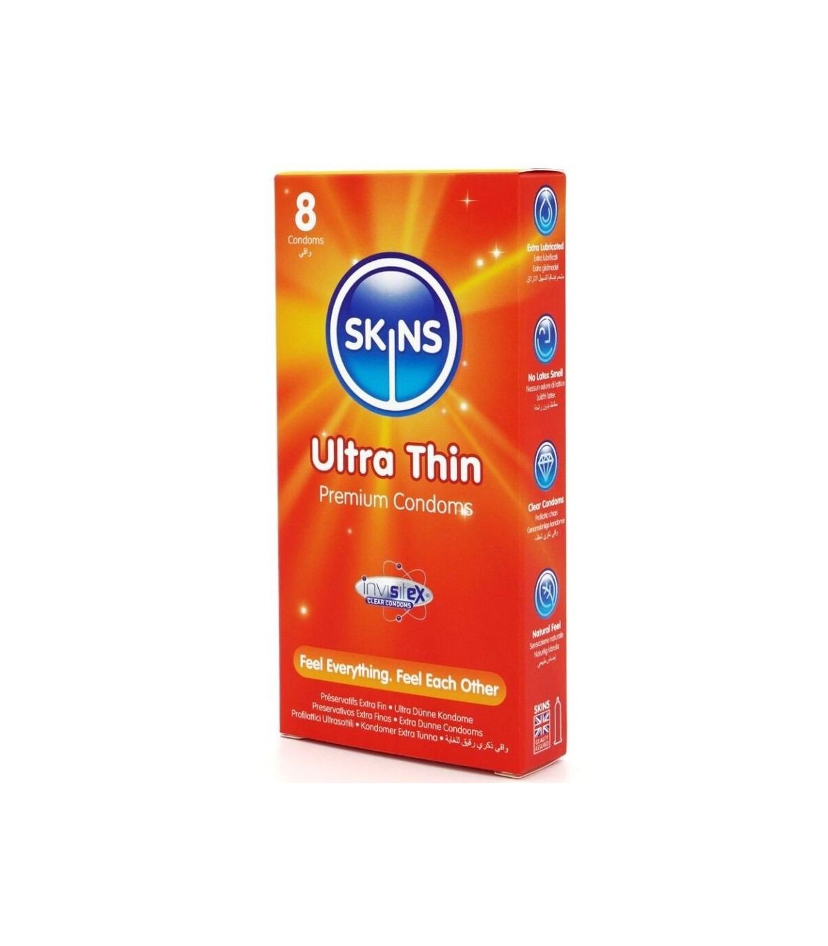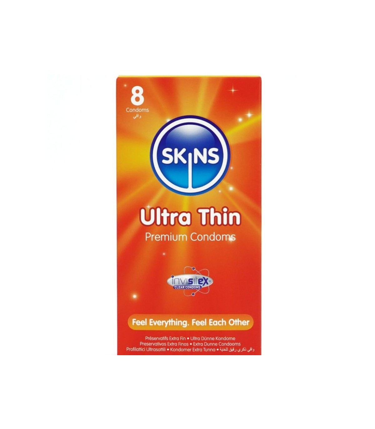 Presentamos el Skins Ultra Thin 8-Pack: un producto económico y listo para usar que ofrece hasta un 33 % más de condones por paquete que el líder del mercado. Diseñado para clientes que buscan la máxima intimidad con protección confiable, este paquete es ideal para tiendas que buscan un producto esencial premium y de alto rendimiento. Los condones Skins Ultra Thin ofrecen todas las ventajas de Skins Natural, pero con un diseño aún más fino para una mayor sensación de intimidad. Fabricados con látex natural de primera calidad, ofrecen resistencia, transparencia y una sensación de segunda piel, lo que los convierte en la opción ideal para quienes priorizan la sensación. Siéntete aún más cerca de tu pareja con el condón Skins Ultra Thin, resistente pero increíblemente fino. Con todas las características de Skins Natural, pero aún más fino, usar un Skins Ultra Thin es tan parecido a una segunda piel.