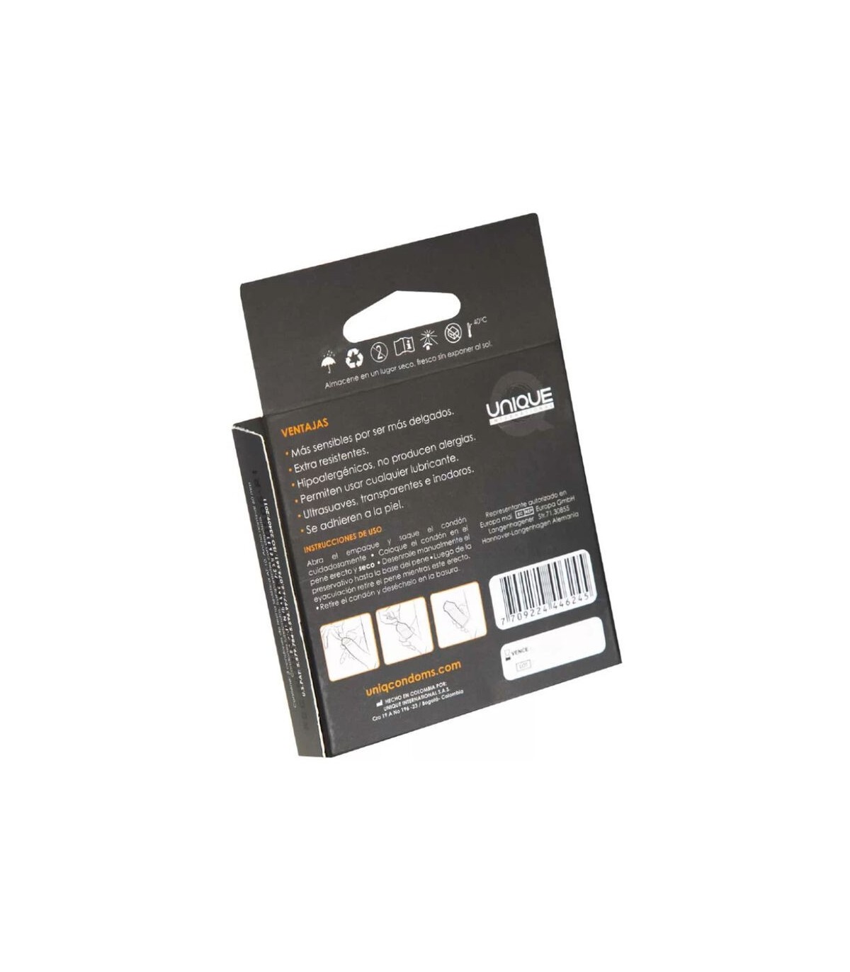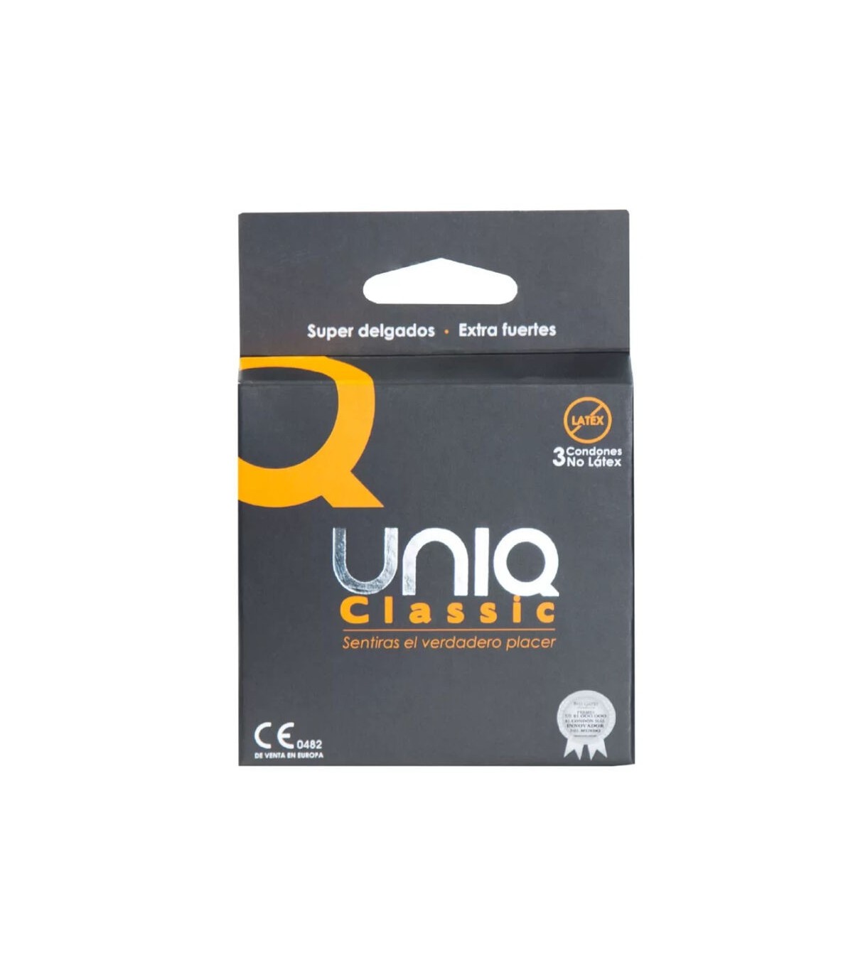 Los preservativos Uniq Classic son transparentes y extrafinos, hechos para el máximo placer y una experiencia sensual. Debido a su grosor de 0,008 mm, estos preservativos te hacen sentir como si no llevaras nada. Los preservativos extrasuaves sin látex, fabricados en resina sintética, son una opción perfecta para aquellas personas alérgicas al látex.