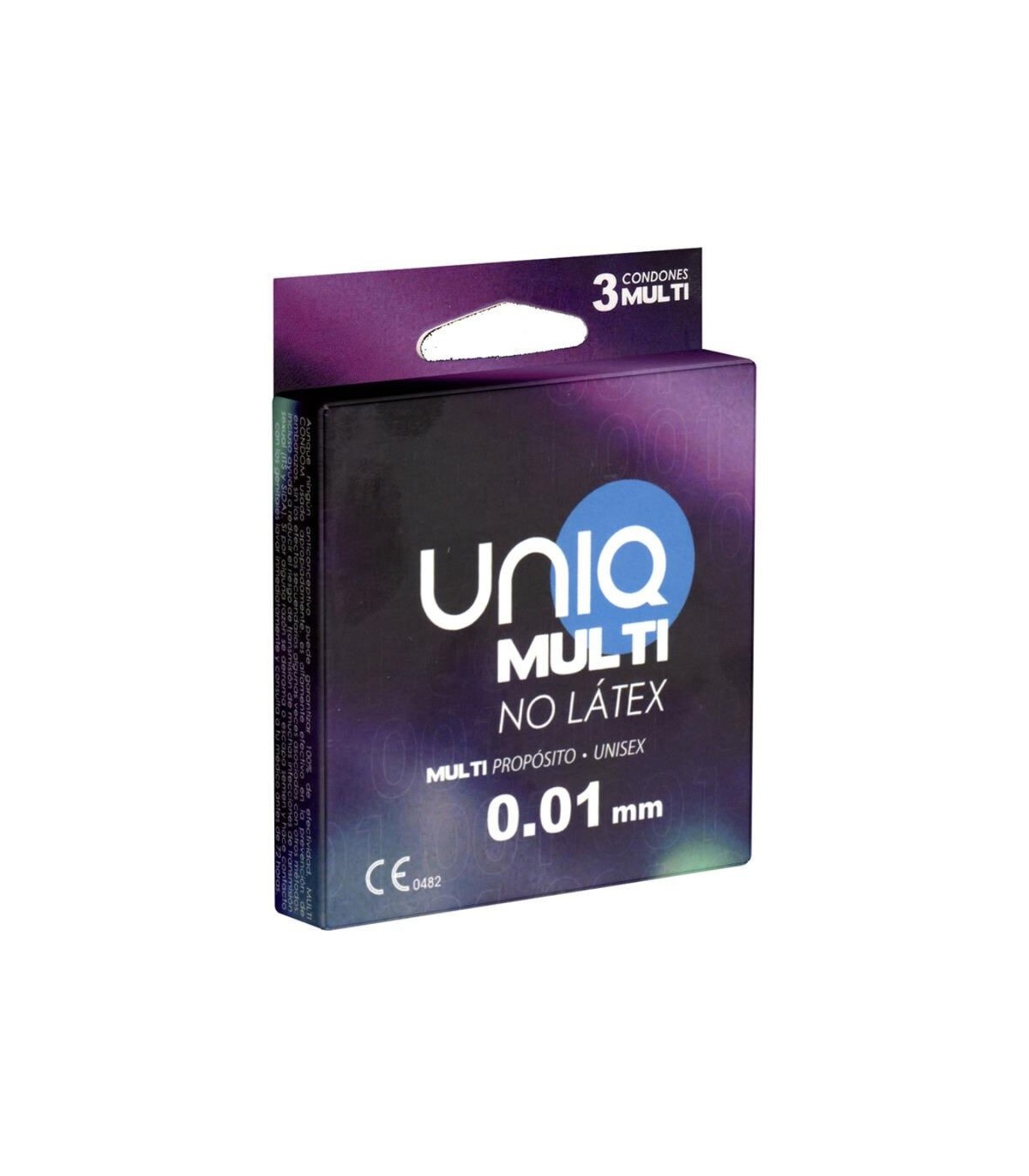 Perfecto para hombres y mujeres,Los innovadores preservativos Uniq MULTI vienen con una base especialmente diseñada. Para una máxima protección, utilícelo como un condón masculino, una presa para el sexo oral o anal, para cubrir un área genital, o introdúzcalo dentro de la vagina incluso 4 horas antes de la relación sexual. El exclusivo y moderno empaque de condones de 3 tarjetas múltiples es seguro para guardar en una billetera.