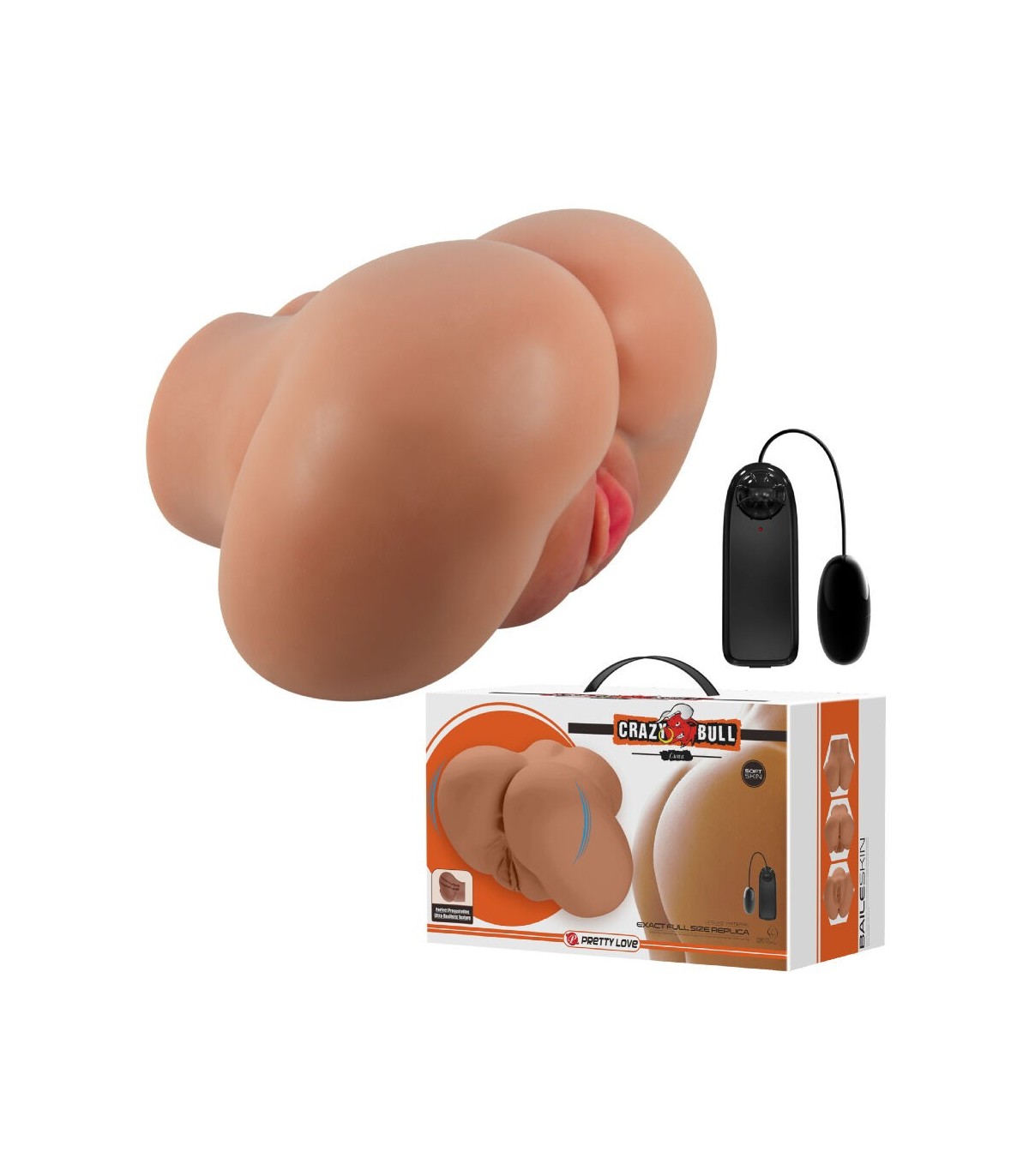 Elige entre la vagina o el ano realistas de este masturbador de doble entrada. Diseñado para verse y sentirse exactamente como el producto real, te resultará difícil distinguir entre estos hermosos orificios y los orificios de la penetración anterior. Una vez que ingreses en cualquiera de los tentadores orificios estrechos, te encontrarás con texturas gloriosas que te seducirán y estimularán de la punta a la base. Inserta el vibrador de bala que lo acompaña para que tu mente y tu pene exploten por completo mientras te introduces profundamente.