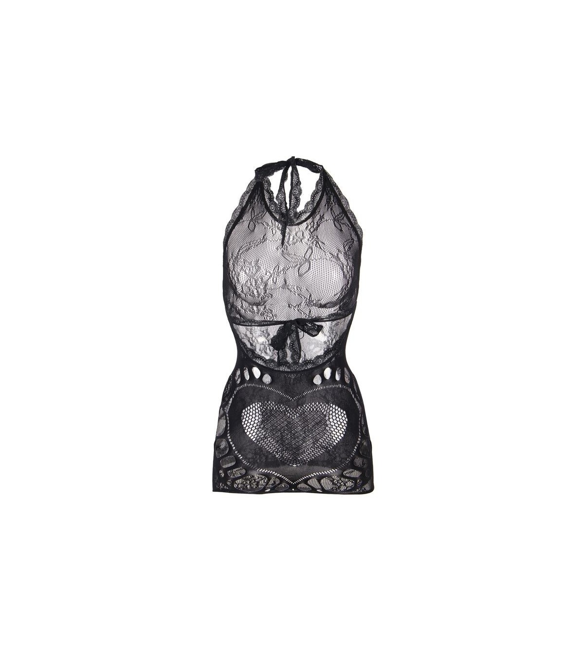 SUBBLIME - 952075 VESTIDO CORTO DE REJILLA CON ESPALDA DESCUBIERTA Y DETALLE DE CORAZÓN NEGRO TALLA ÚNICA