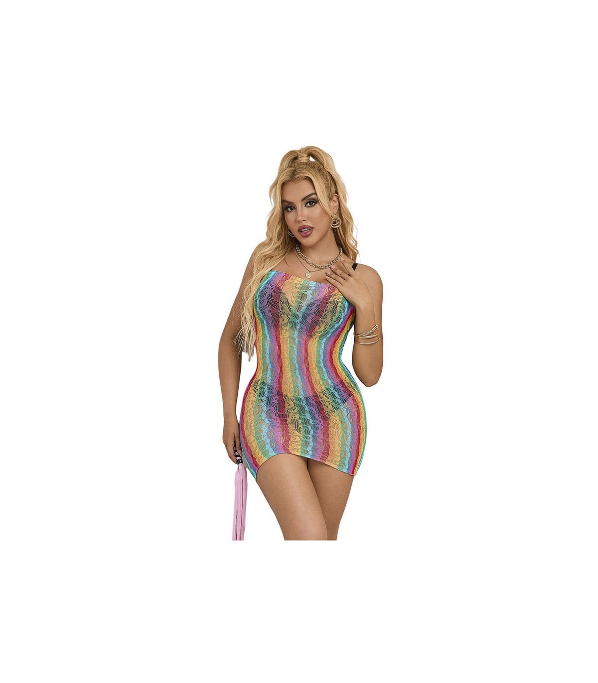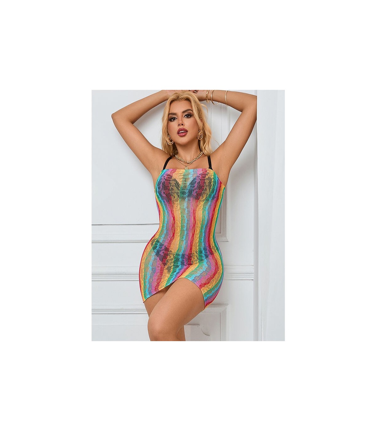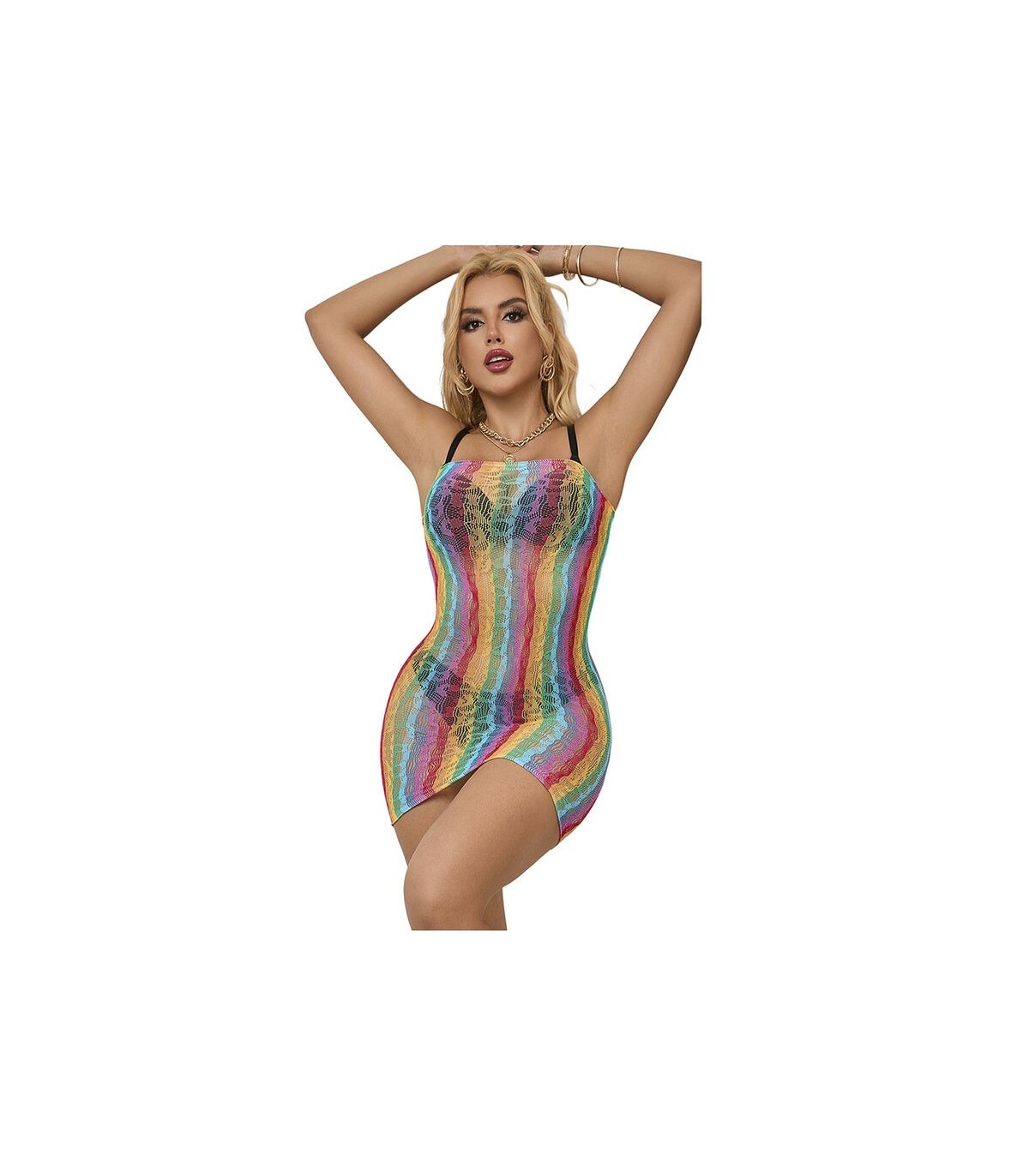 Este body de rejilla con un patrón de arcoíris es perfecto para quienes buscan una prenda que combine estilo, color y sensualidad en un solo diseño.