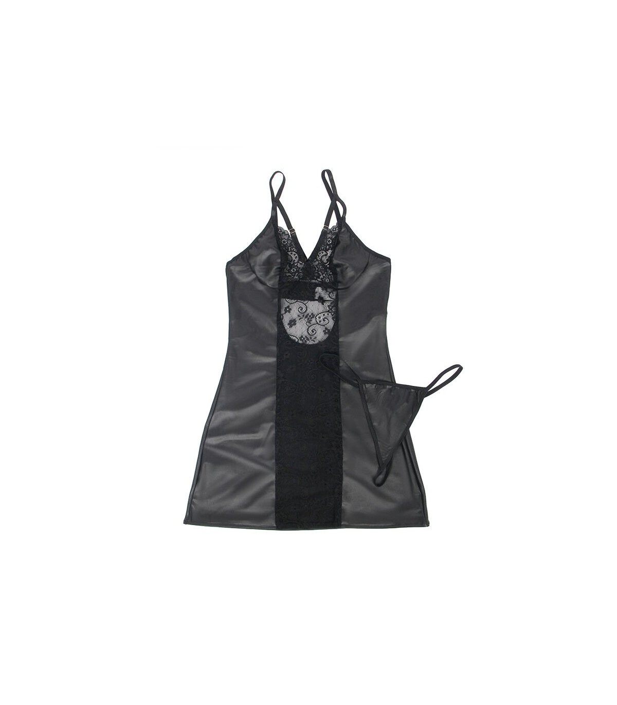 SUBBLIME - 954178 VESTIDO + TANGA CUERO NEGRO L/XL