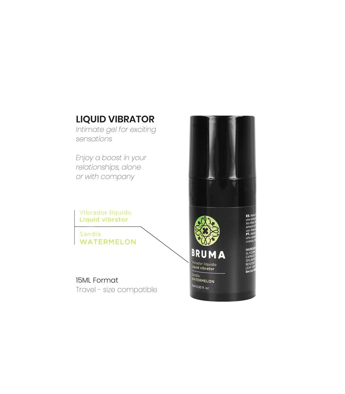 El vibrador líquido sabor sandía de la marca BRUMA es un gel íntimo diseñado para proporcionar sensaciones excitantes y placenteras durante tus momentos más íntimos. Este producto innovador está pensado para darte un impulso extra en tus relaciones, ya sea en solitario o en compañía, haciendo que cada experiencia sea única y memorable.