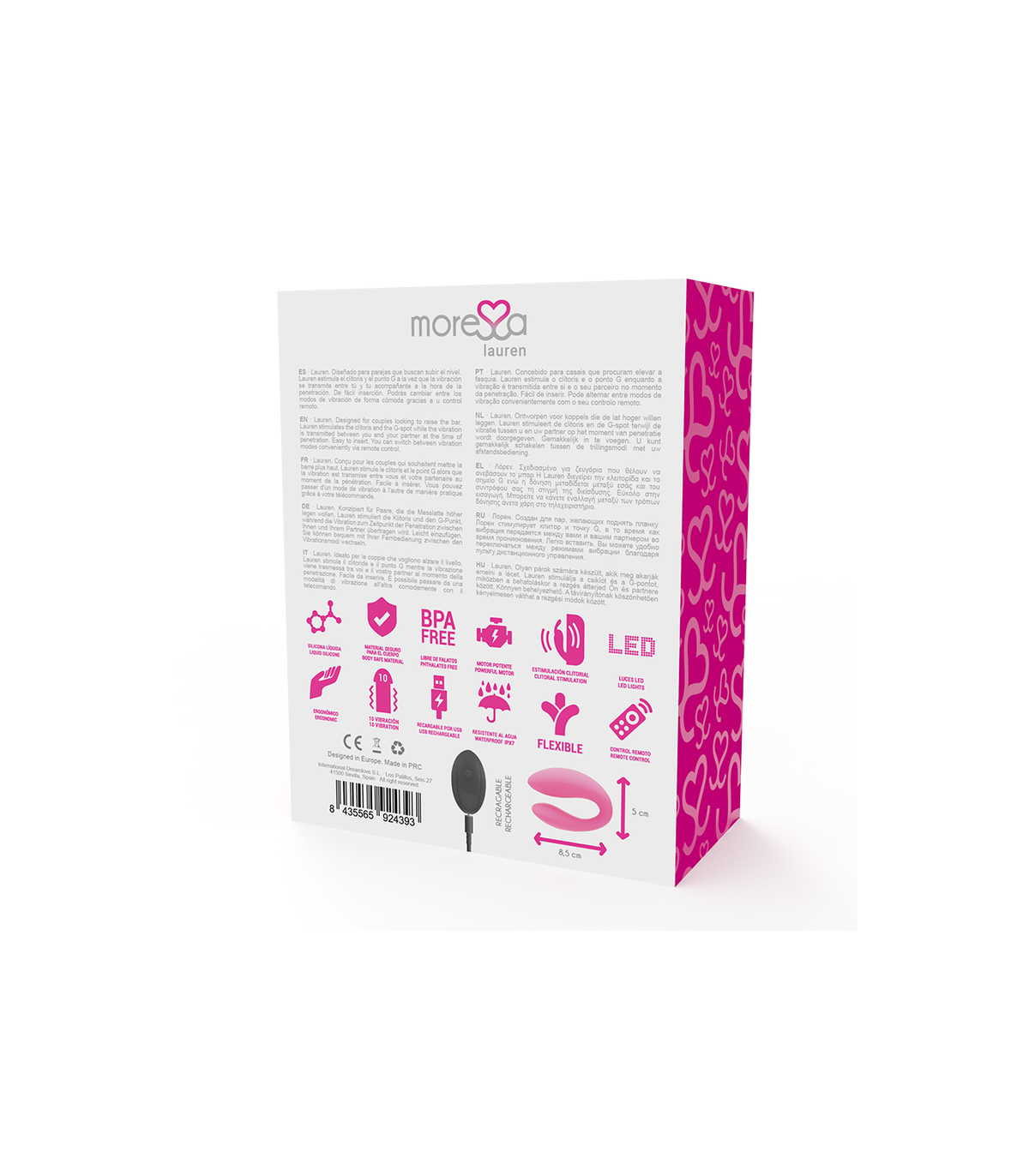 Lauren garantiza momentos inolvidables y compartidos: durante el sexo, el vibrador en forma de U simplemente se inserta para que ambas partes puedan disfrutar de las vibraciones intensas. Mientras que un eje estimula tu clítoris desde el exterior, el otro lado del juguete asegura una tensión seductora dentro de su sello de amor. Ambos extremos vibran igualmente poderosamente gracias a los dos motores. El eje interno estimula tanto su punto G como su mejor pieza cuando lo enciendes y apagas.