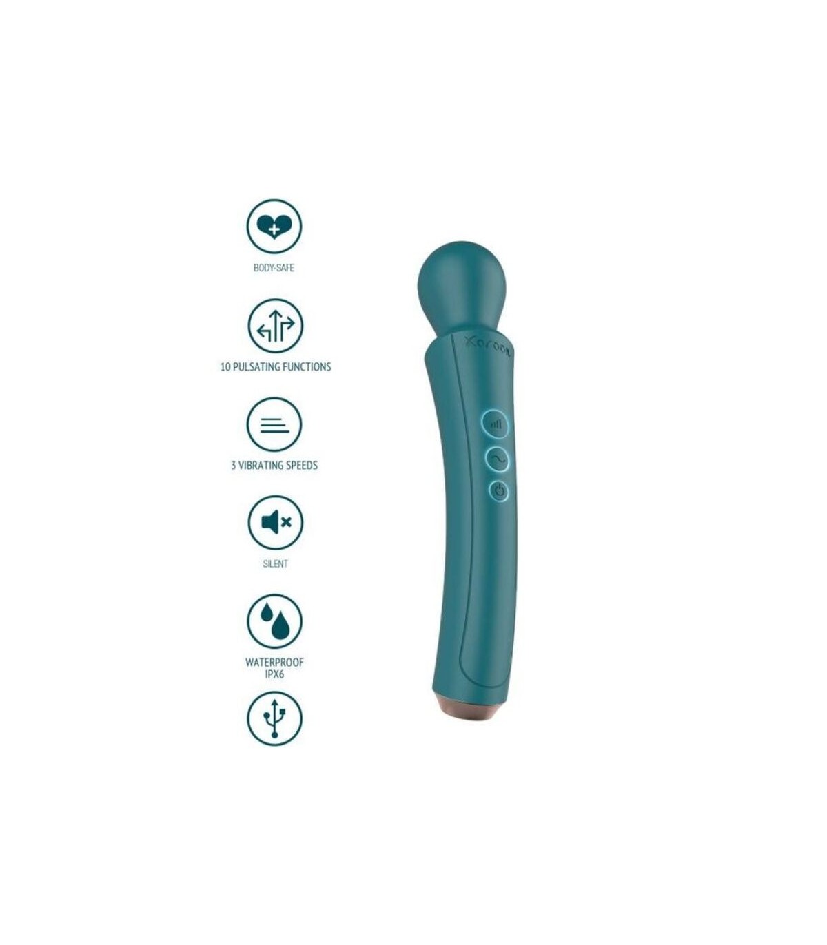 Conoce a tu nuevo mejor amigo: la varita curva de XOCOON. Esta varilla de masaje recargable tiene una espectacular vibración fuerte, profunda y retumbante, pero casi sin vibraciones en el mango para una máxima comodidad. Elige entre 3 velocidades diferentes y 10 patrones de vibración y disfruta de un gran masaje por todo tu cuerpo. ;