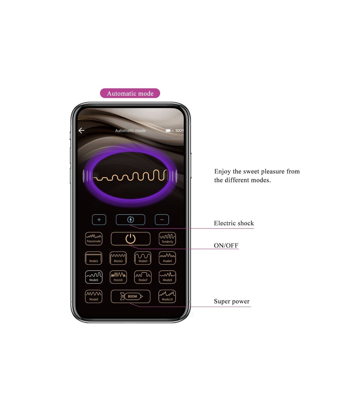 - Función:12 funciones de vibración 3 funciones de descarga eléctrica Aplicación móvil Control de larga distancia