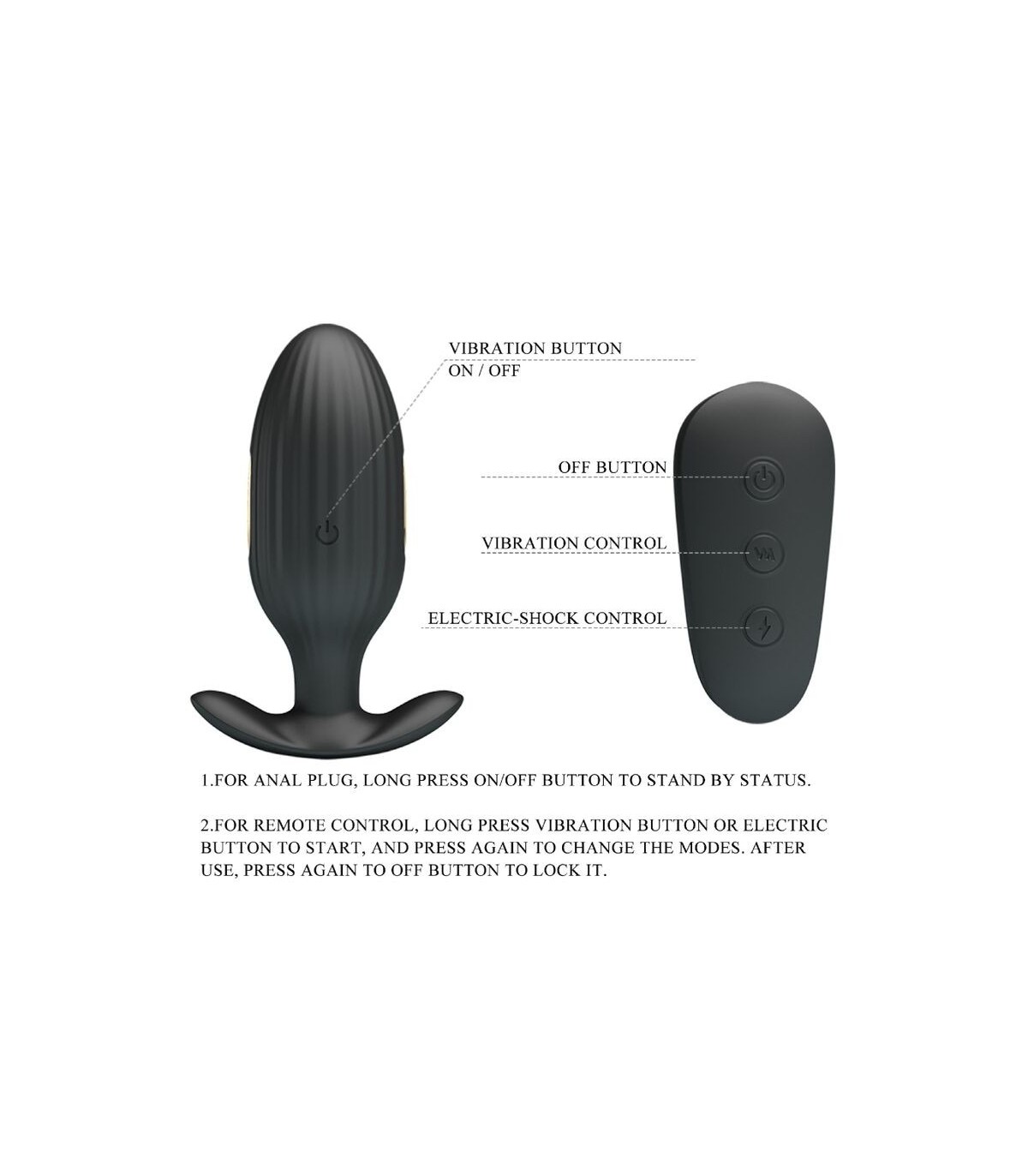 - Función:7 funciones de vibración 3 funciones de descarga eléctrica Control remoto inalámbrico