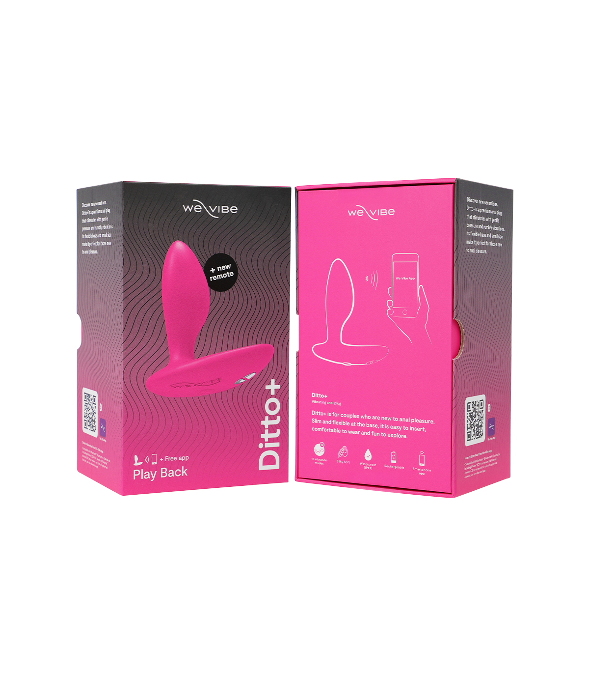 Ditto+ es el plug anal por excelencia, un vibrador pequeño pero potente con una cabeza suave y cónica y una base flexible para un uso fácil y un placer específico. Recubierto de silicona suave, resistente al agua y recargable, Ditto+ hace todo lo que necesitas y añade otra capa de placer para cada tipo de cuerpo.