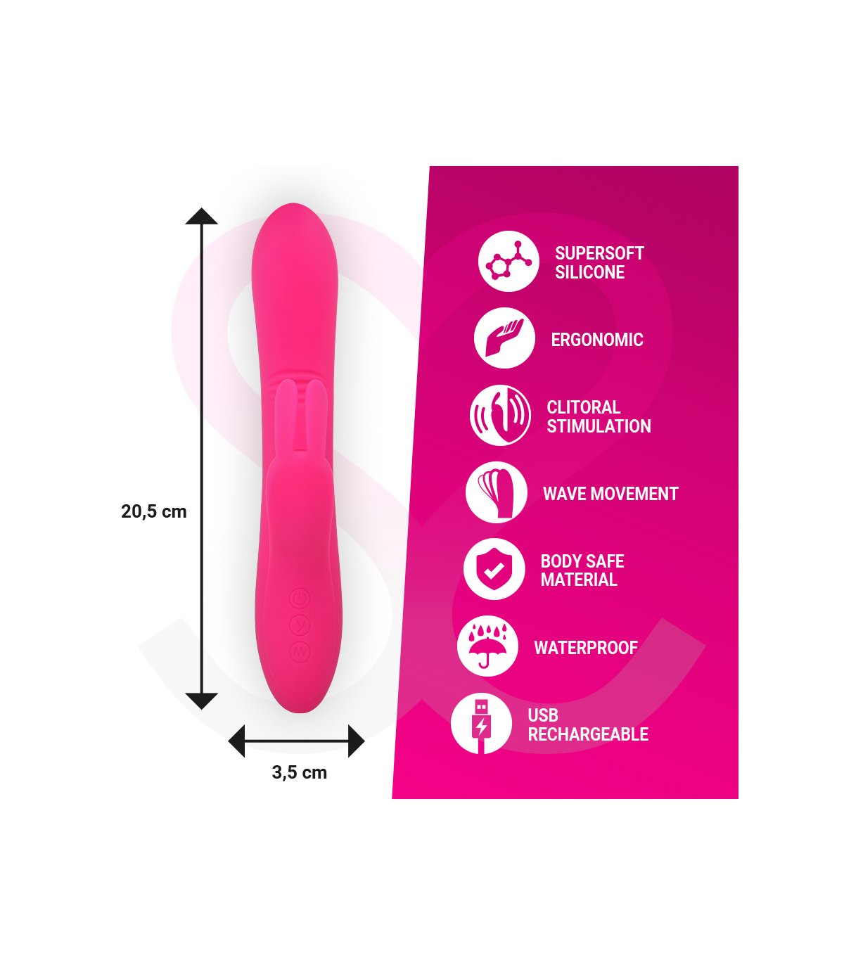 Movimiento “Waving” inspirados en la sensación que aplican los dedos al masajear el punto G. Se adapta perfectamente a tu cuerpo y estimula varias zonas erógenas a la vez.
