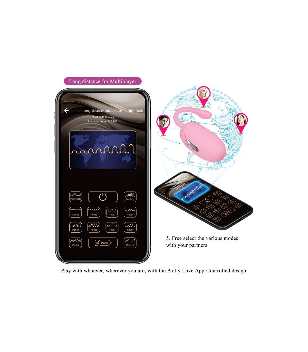 - Función:12 funciones de vibración, 3 funciones de descarga eléctrica, aplicación móvil, control de larga distancia