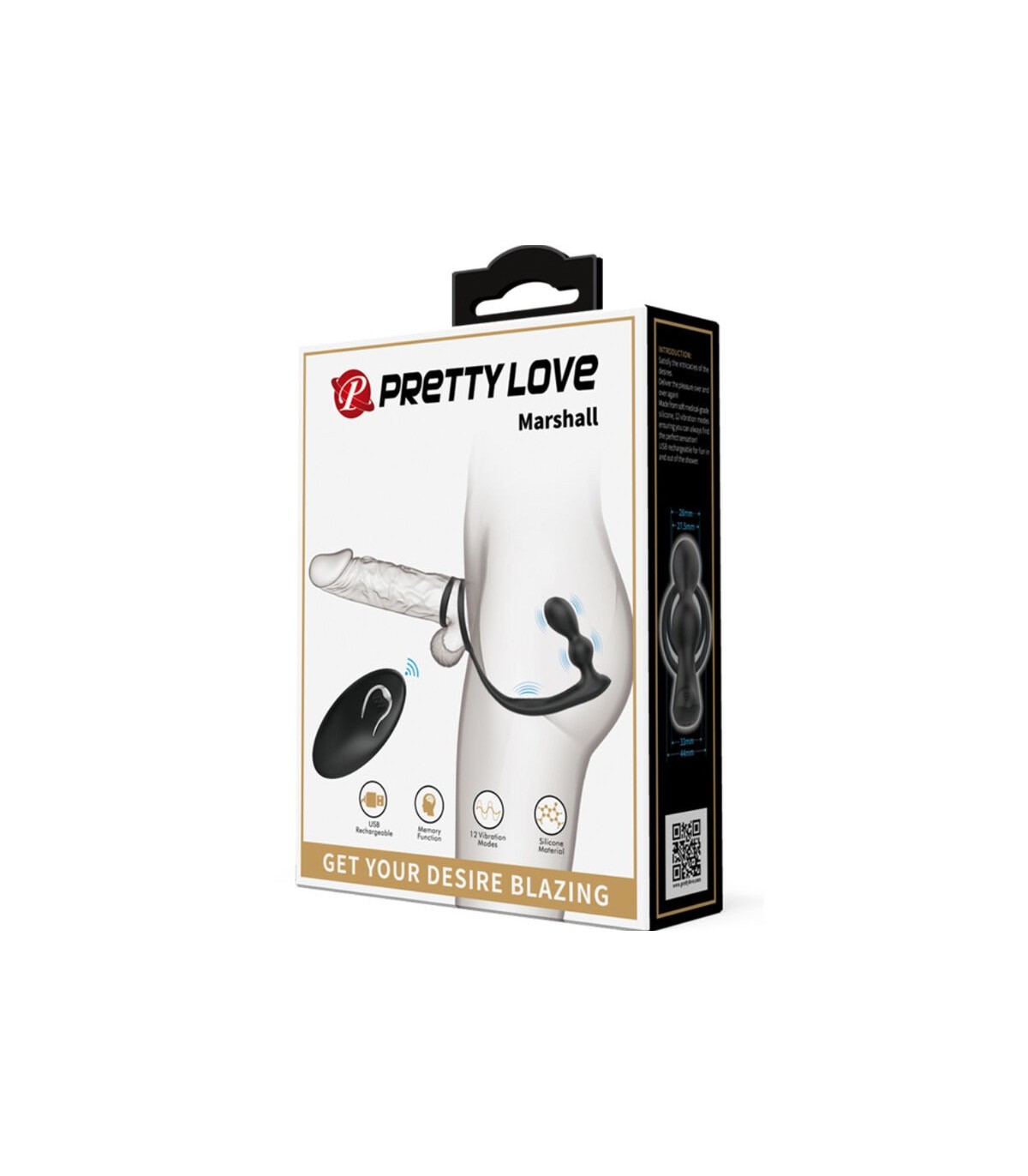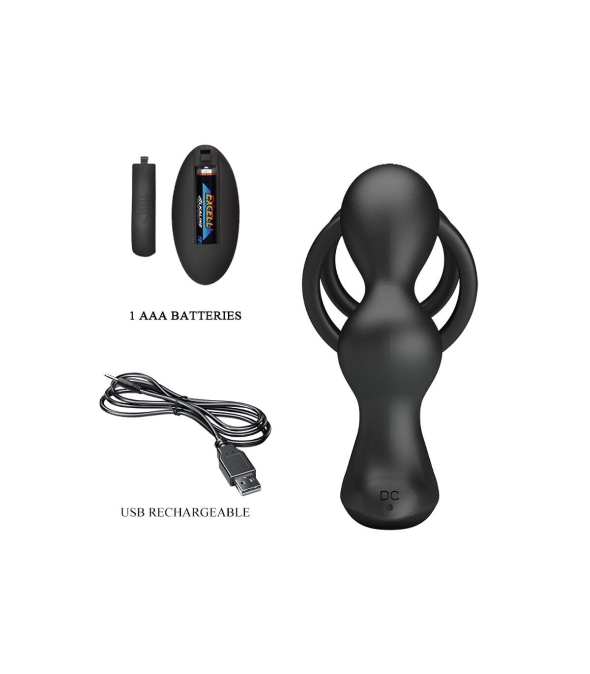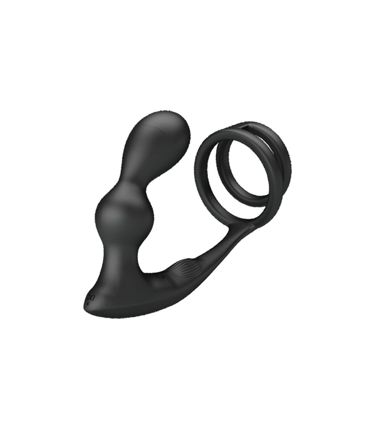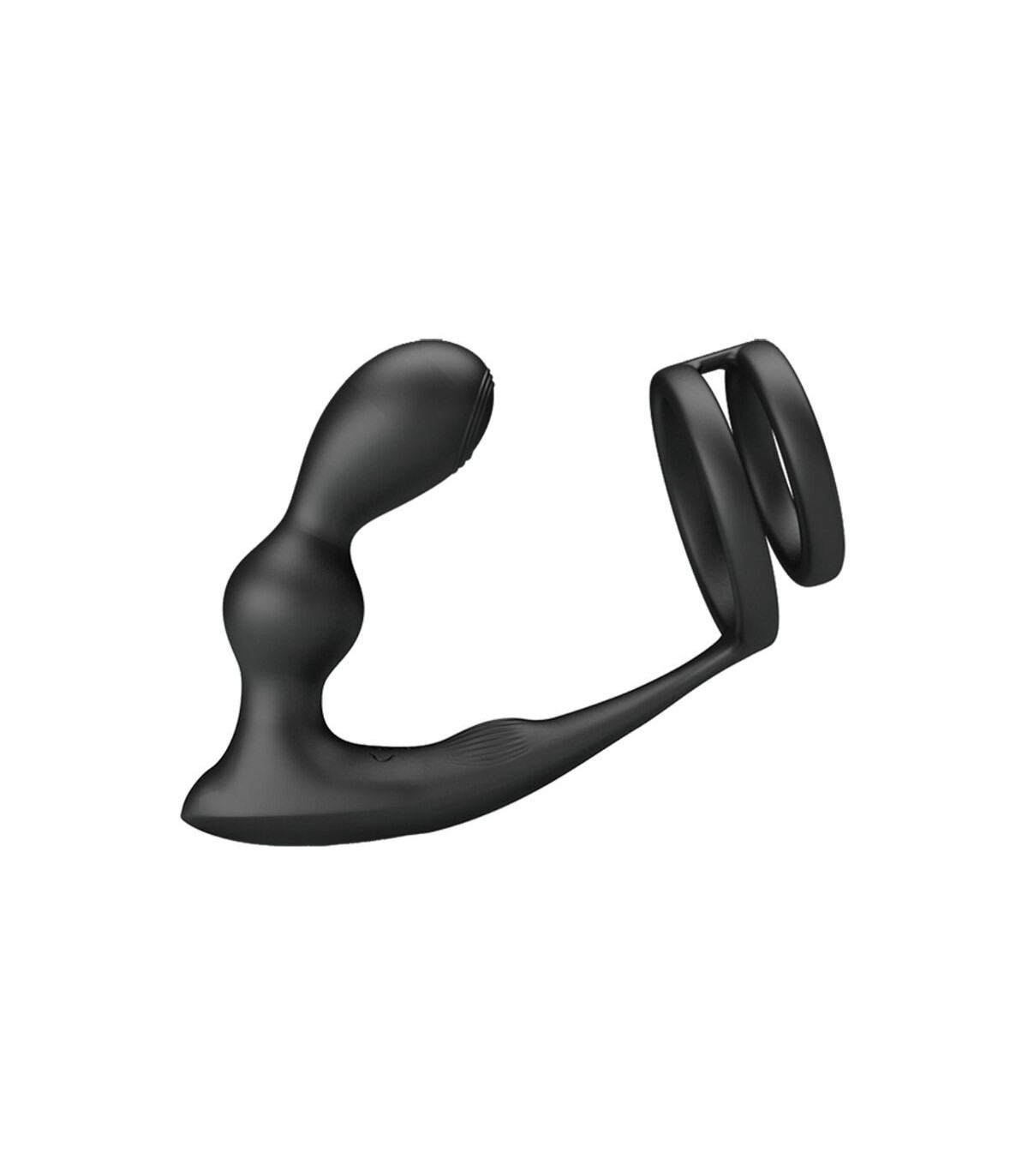 Este anillo para el pene con plug anal con control remoto es un anillo combinado para el pene y el plug anal vibratorio sujeto de forma segura.