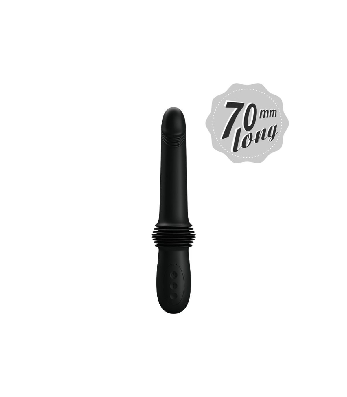 Este vibrador recargable con propulsión es una obra maestra del placer personal. Deja que te emocione con sus curvas sensuales y te lleve a un clímax potente y satisfactorio. Este vibrador puede extenderse hasta 70 mm para un movimiento de ida y vuelta que imita el sexo para una estimulación realista. Mientras se mueve, explora tres modos de propulsión con los controles fáciles de usar, mientras que el mango ergonómico te permite disfrutar de un agarre cómodo. Para una apariencia y una sensación lujosas, la silicona negra suave y aterciopelada completa este vibrador de primera calidad, la batería es recargable por USB para orgasmos sin esfuerzo una y otra vez.