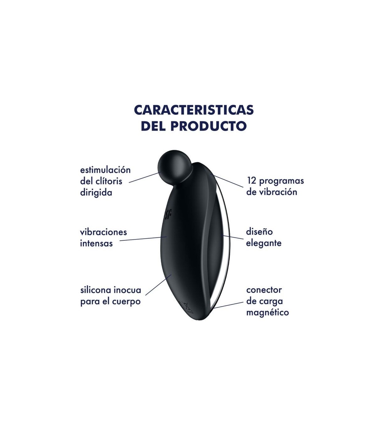 El Satisfyer Spot On 2 destaca sobre todo por su exterior brillante. Su brillante cobertura ABS hace que este dispositivo destaque a nivel visual. Pero su funcionamiento también lo diferencia de otros vibradores lay-on en lo que respecta a la estimulación del clítoris. Mientras que otros dispositivos se basan en la estimulación a gran escala de las zonas erógenas, este vibrador Satisfyer concentra su potencia en la punta redonda hecha de silicona suave y agradable para la piel y mima tu clítoris con vibraciones intensas y específicas. 12 programas de vibración, que se pueden controlar con los botones +/-, proporcionan variedad y asuguran el orgasmo. Con sus controles sencillos, su tamaño compacto y su diseño elegante y divertido, el Satisfyer Spot On 2 es el vibrador ideal para personas que quieren familiarizarse poco a poco con el mundo de los dispositivos Satisfyer.