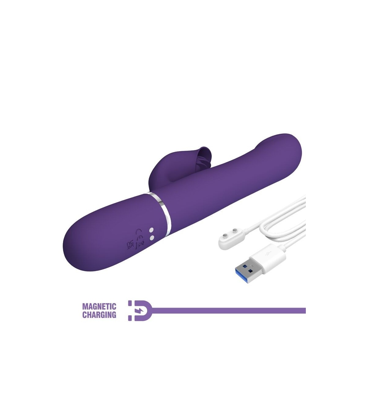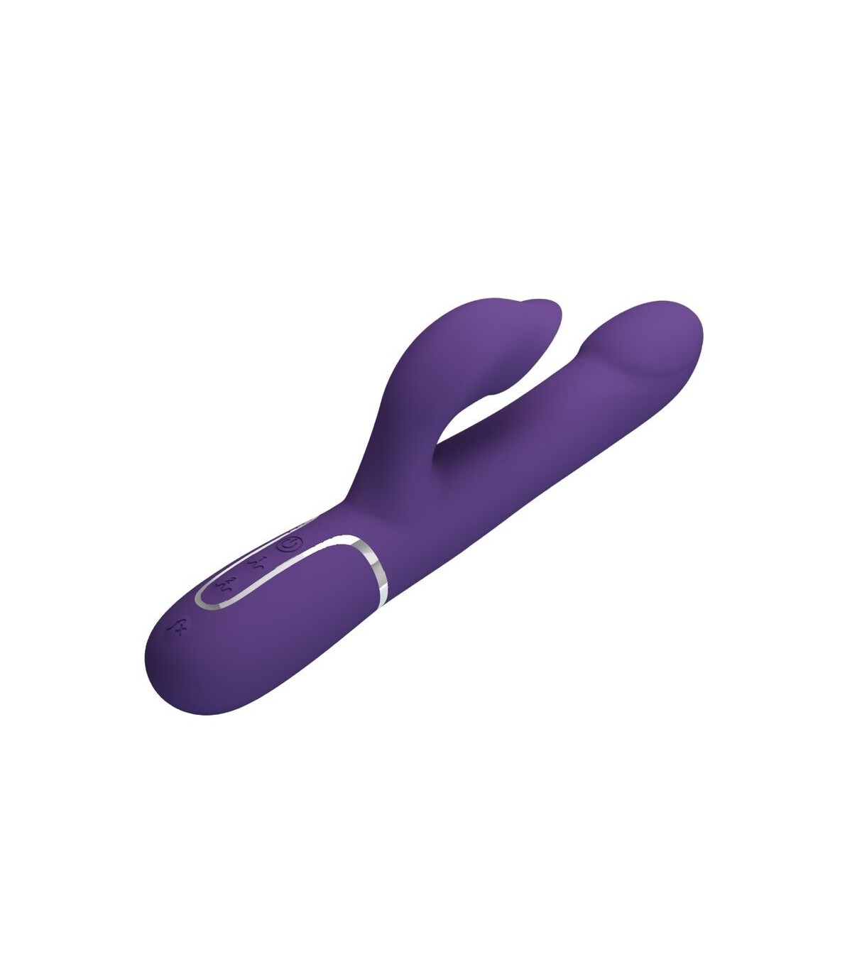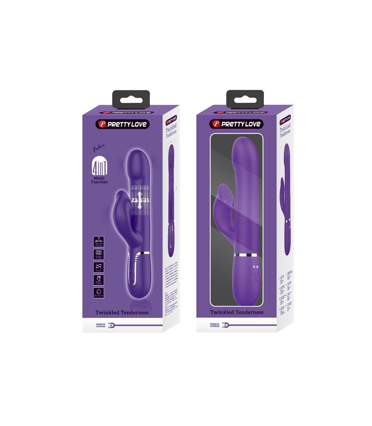 Diseñado para el máximo placer, quédate en la cama con el Vibrador Conejo Pretty Love. Con potentes motores gemelos, uno ubicado en la punta y el otro en el brazo externo, te prometemos que encontrarás tu vibración perfecta mientras 7 intensidades y ritmos de vibración te llevan a un poderoso clímax combinado. Con una sola fila de perlas rígidas que viajan hacia arriba y hacia abajo en un emocionante masaje íntimo, disfrute de las tres configuraciones de velocidad mientras frota constantemente su sensible punto dulce. Para mayor placer, presione el botón Burst Climax para explorar sus increíbles y trascendentales orgasmos.