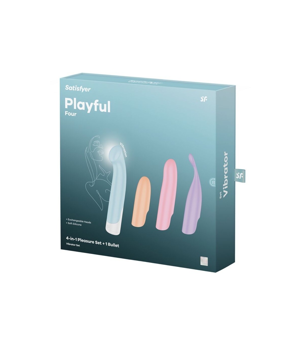 Con Playful Four obtienes un juego de cuatro vibradores diferentes: ¡solo coloca la funda preferida en la base Power-Bullet y estarás lista para el placer! Elige el vibrador de punto G con un extremo curvo para una estimulación perfecta del punto G, el vibrador de punta con una punta delgada para todas tus zonas erógenas, el pequeño y compacto vibrador de contacto para una estimulación dirigida o el vibrador ligeramente curvado para la estimulación del punto G o del clítoris.