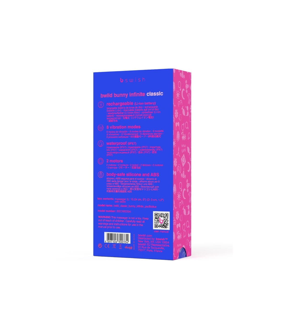 Conoce el 'OG' del placer, Bwild Bunny Infinite Classic. Un placer garantizado con sus 2 potentes motores, 4 intensidades de velocidad y 4 patrones. Junto con su silicona 100% segura para el cuerpo, suave como la seda y con curvas, y su cosquilleo tan preciso, es resistente al agua y está lista para dar un chapuzón.