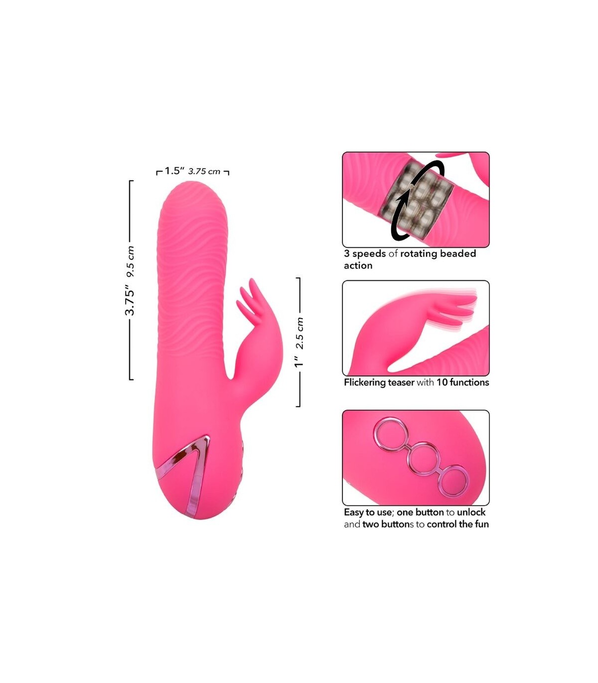- Estimulador dual potente, compacto, vibratorio y giratorio con triple teaser