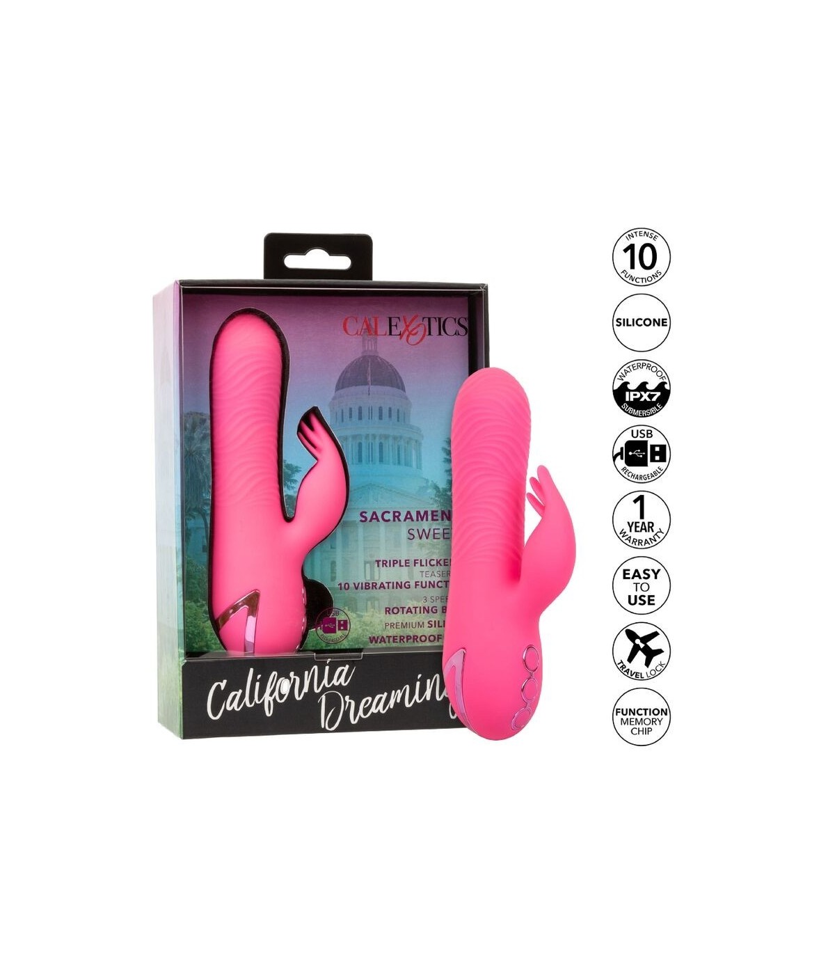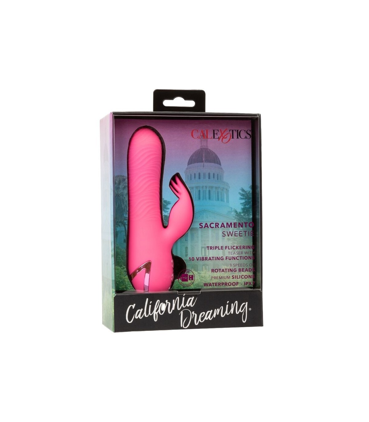 Sumérgete en el éxtasis con California Dreaming Sacramento Sweetie, un potente estimulador diseñado para emocionar. Esta delicia dual combina características de vibración y rotación para una sensación completamente explorada. Disfrute de 3 velocidades de acción giratoria de las cuentas dentro del eje, complementadas con 10 funciones de vibración, pulsación y escalada en el estimulador. Elaborado con silicona segura para el cuerpo, es 100% impermeable para aventuras. El chip de memoria recuerda su última configuración para devoluciones sin esfuerzo. Con un bloqueo de viaje para mayor privacidad, es recargable por USB y ofrece 40 minutos de placer de alta intensidad o 90 minutos a una velocidad más suave. Deja que California Dreaming Sacramento Sweetie te transporte a un mundo de sueños.