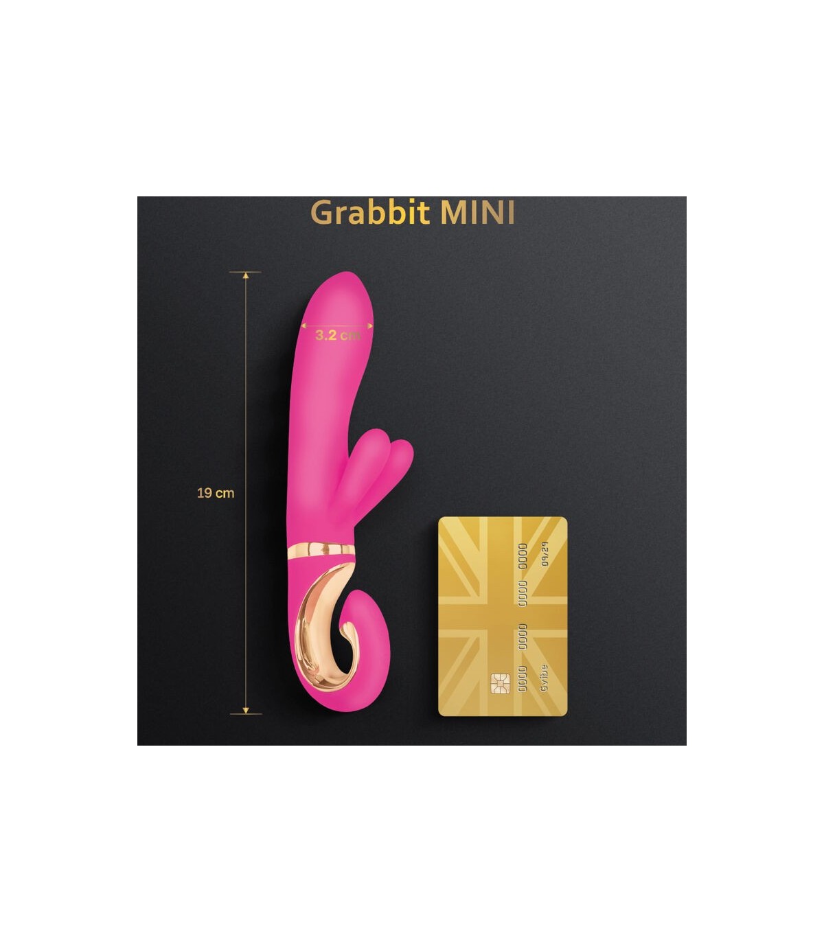 Si estás listo para comprar tu nuevo vibrador favorito, estás listo para conocer al G-Rabbit mini de G Vibe. El vibrador definitivo para el punto G, el G-Rabbit mini cuenta con 3 potentes motores, uno de los cuales está en la cola en la punta, para estimular el punto G, y dos motores ubicados en las pequeñas orejas, para estimular el clítoris. El G-Rabbit mini sigue y sigue hasta por 4 horas con una sola carga.