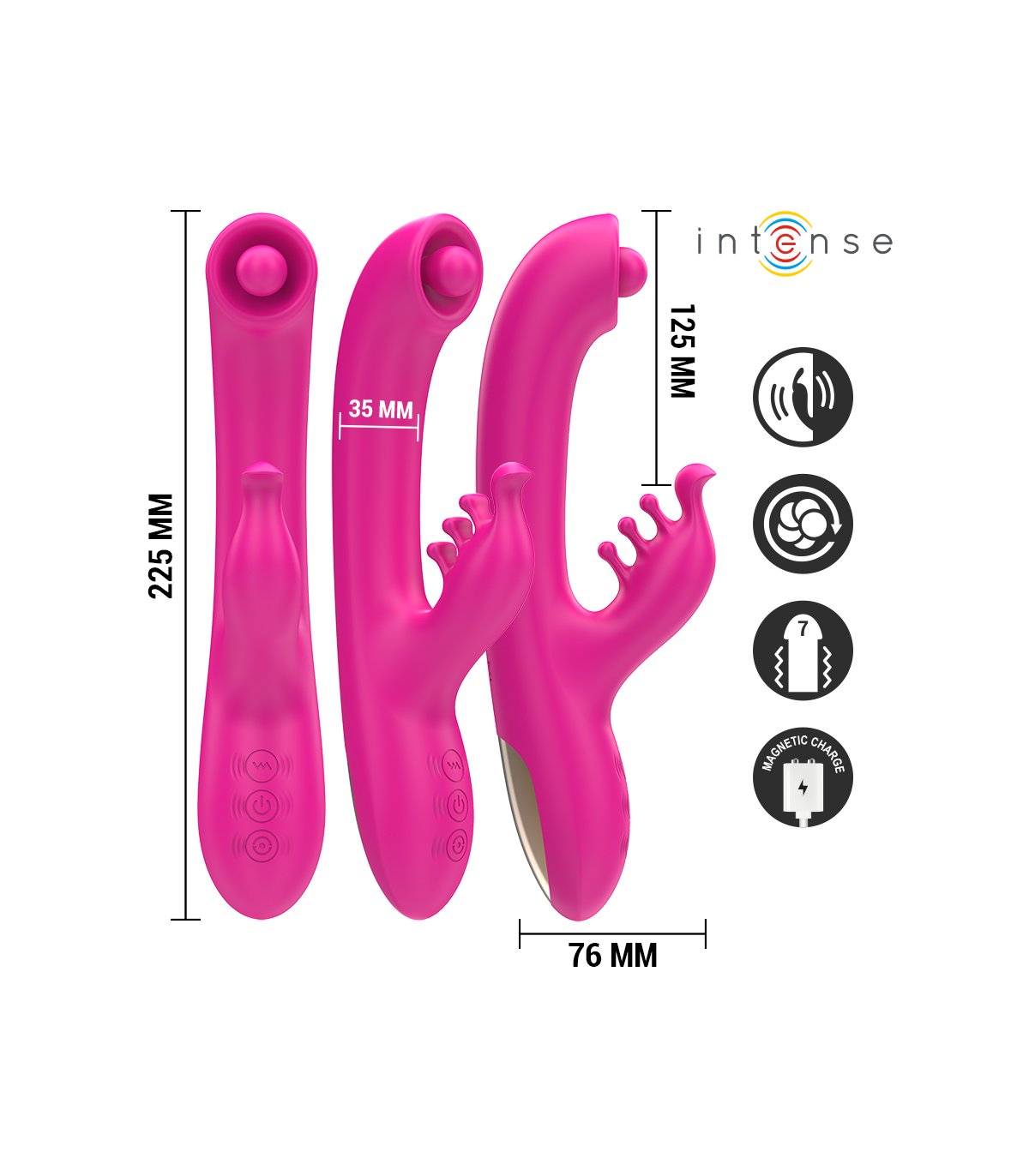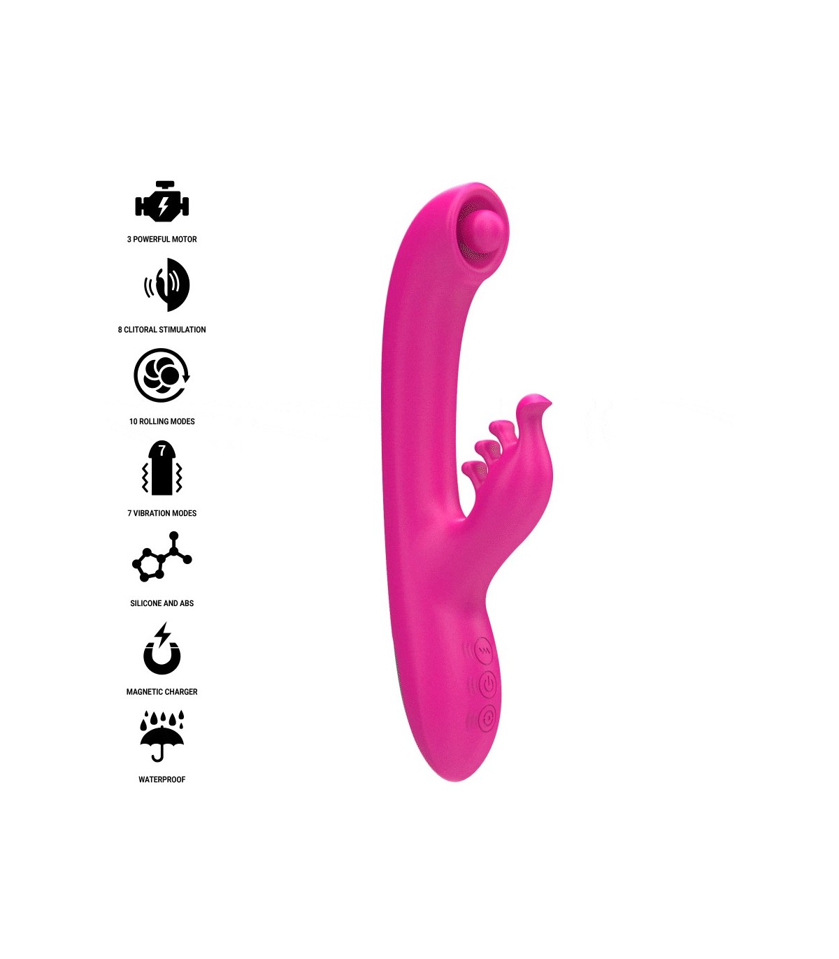 - 3 motores independientes: vibración clitorial, vibración interna y rotación