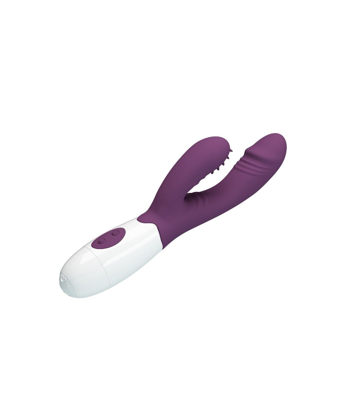 Este bonito estimulador dual de conejo te hace vibrar justo donde cuenta! Un eje central curvo alcanza ángulos profundos para masajear las zonas calientes internas. En el exterior, los suaves pétalos de silicona del estimulador del clítoris le dan a tu capullo el mejor masaje. Personaliza tu placer con 7 potentes modos de vibración y 3 funciones de movimiento ondulante.