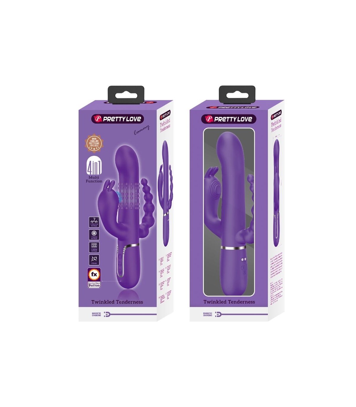 El Triple Vibrator de Pretty Love es un vibrador de conejo elegantemente curvado con un estimulador anal, que proporciona estimulación vaginal, del clítoris y anal simultánea.